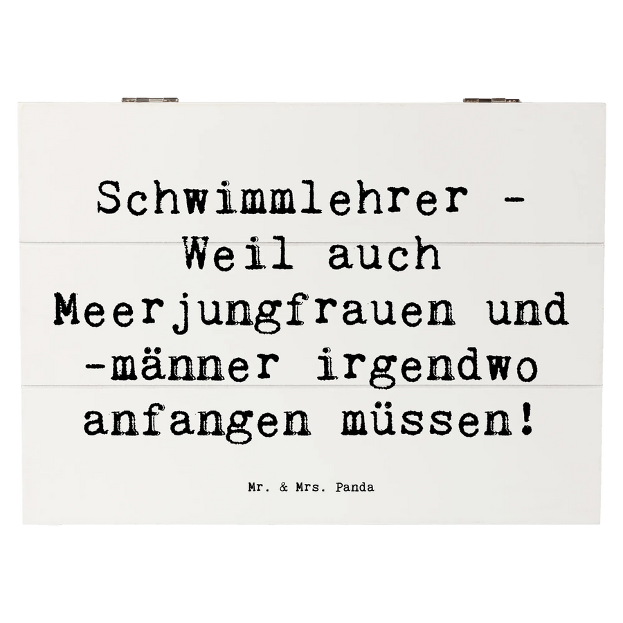 Entdecke die bezaubernde Holzkiste mit dem niedlichen Motiv "Schwimmlehrer" von Mr. & Mrs. Panda! Diese wundervolle Kiste ist nicht nur ein echter Blickfang, sondern auch extrem praktisch. Sie bietet ausreichend Platz für all Deine wertvollen Erinnerungen, egal ob es sich um Fotos, kleine Schätze oder besondere persönliche Gegenstände handelt.