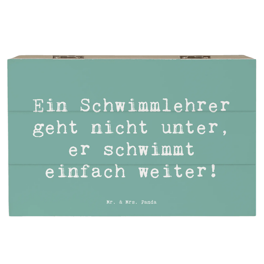 Mit dem liebevollen Spruch „Ein Schwimmlehrer geht nicht unter, er schwimmt einfach weiter!“ ist diese Holzkiste von Mr. & Mrs. Panda ein kleines Statement voller Wertschätzung. Ideal als Aufbewahrungsbox, Geschenkbox oder Erinnerungskiste – sie vereint hübsches Design mit durchdachter Funktionalität.