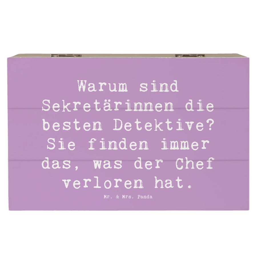 Holzkiste Spruch Warum sind Sekretärinnen die besten Detektive? Sie finden immer das, was der Chef verloren hat. - 19 x 12 cm - Lavendeltraum