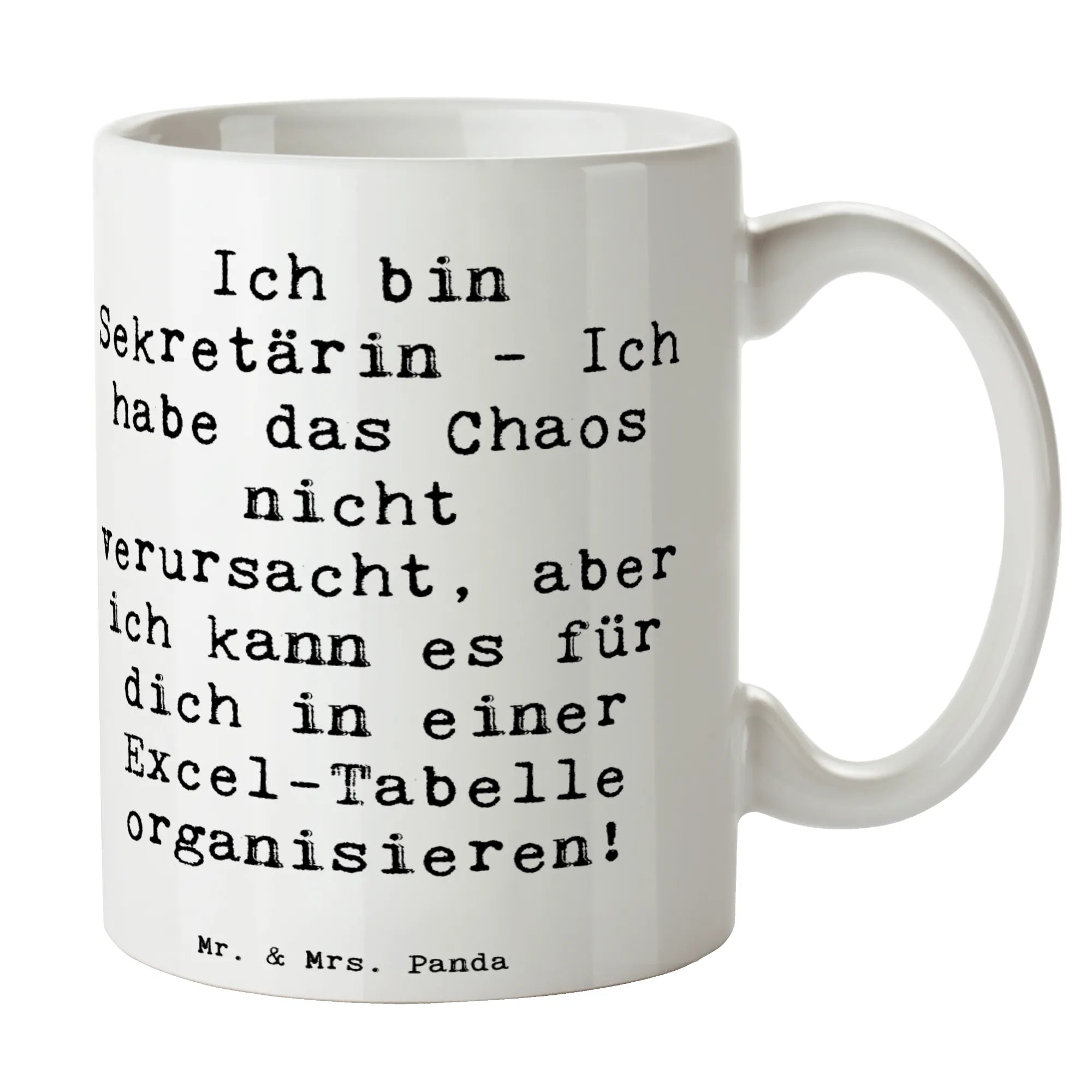 Suchst Du nach dem perfekten Geschenk für eine Sekretärin oder jemanden, der im Büro arbeitet? Unsere wunderschöne spülmaschinenfeste Keramiktasse von Mr. & Mrs. Panda ist genau das Richtige! Mit dem liebevoll handgezeichneten Motiv "Ich bin Sekretärin - Ich habe das Chaos nicht verursacht, aber ich kann es für dich in einer Excel-Tabelle organisieren!" bringt diese Tasse ein Lächeln in den Büroalltag und ist gleichzeitig eine praktische Ergänzung für jede Kaffeepause.
