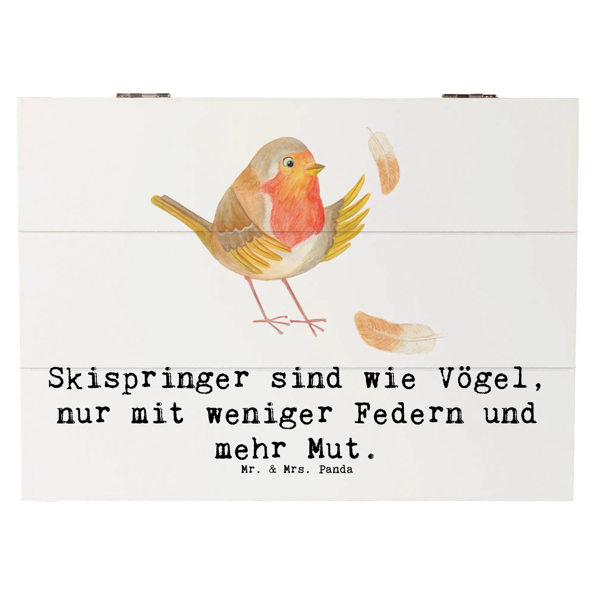 Diese Kiste mit dem liebevollen Motiv "Skispringen" und dem Spruch "Skispringer sind wie Vögel, nur mit weniger Federn und mehr Mut" ist perfekt für alle Sportbegeisterten, die ihren Schatz an Erinnerungen stilvoll aufbewahren möchten.