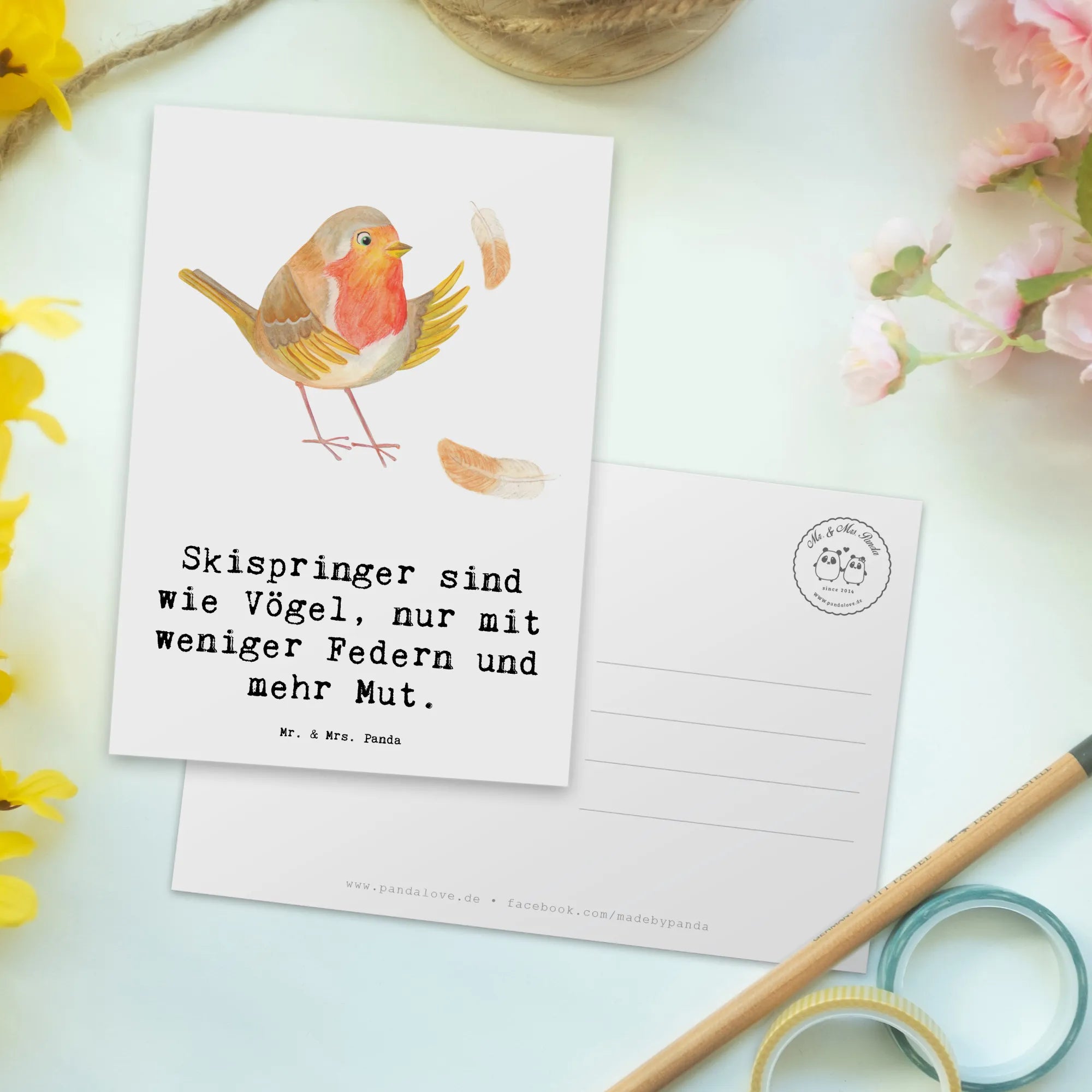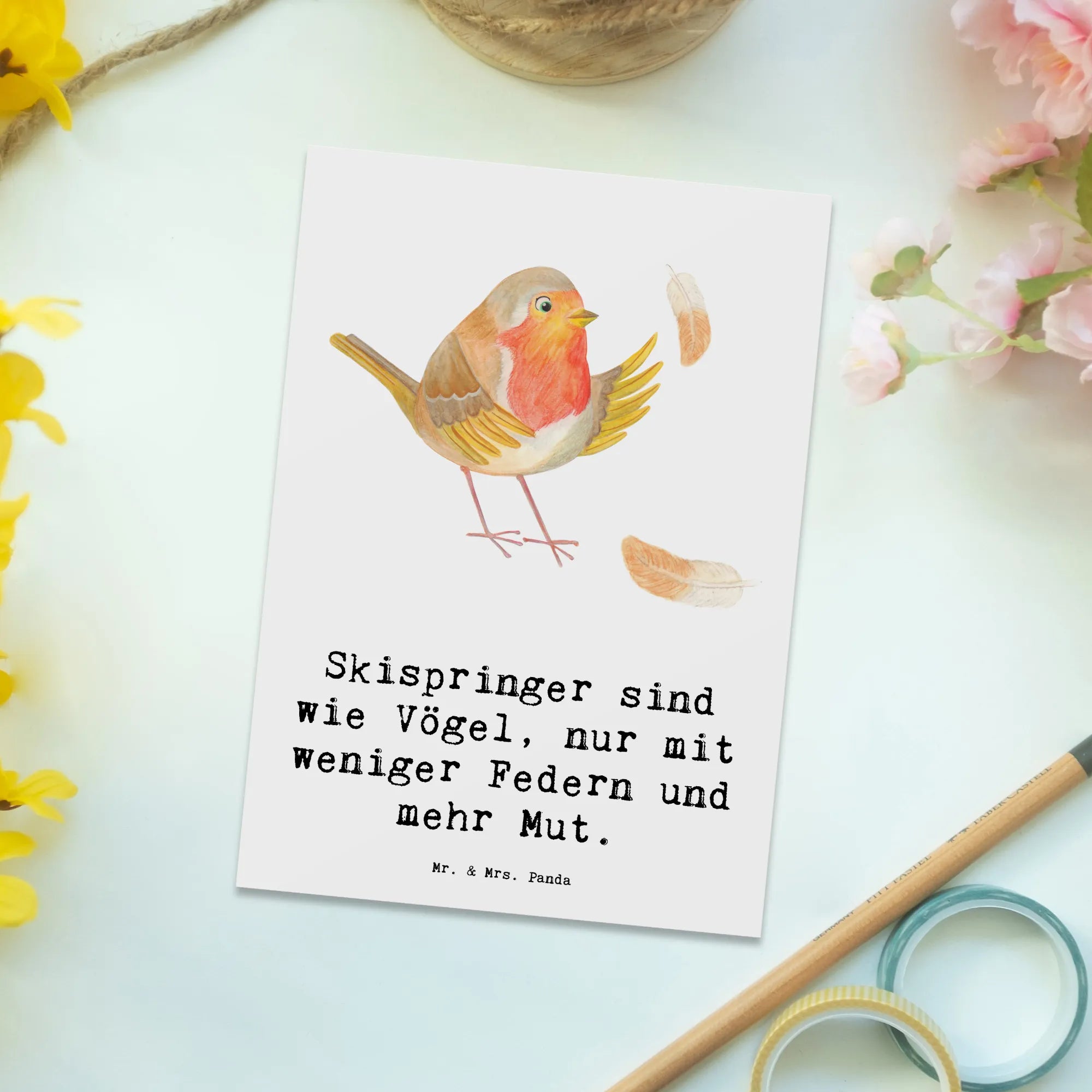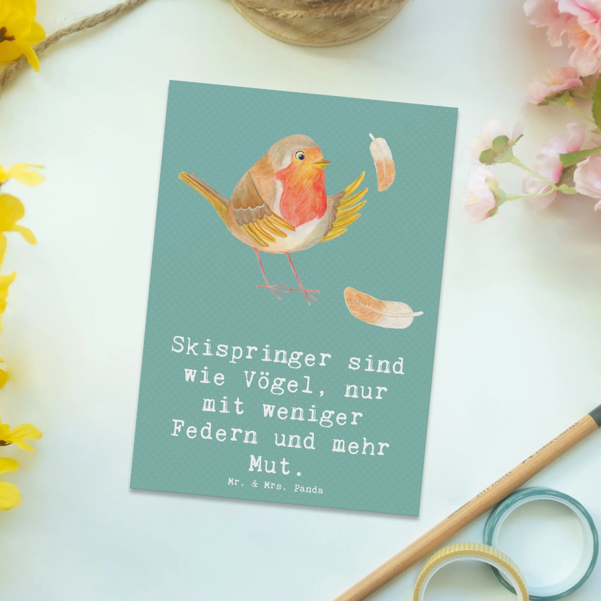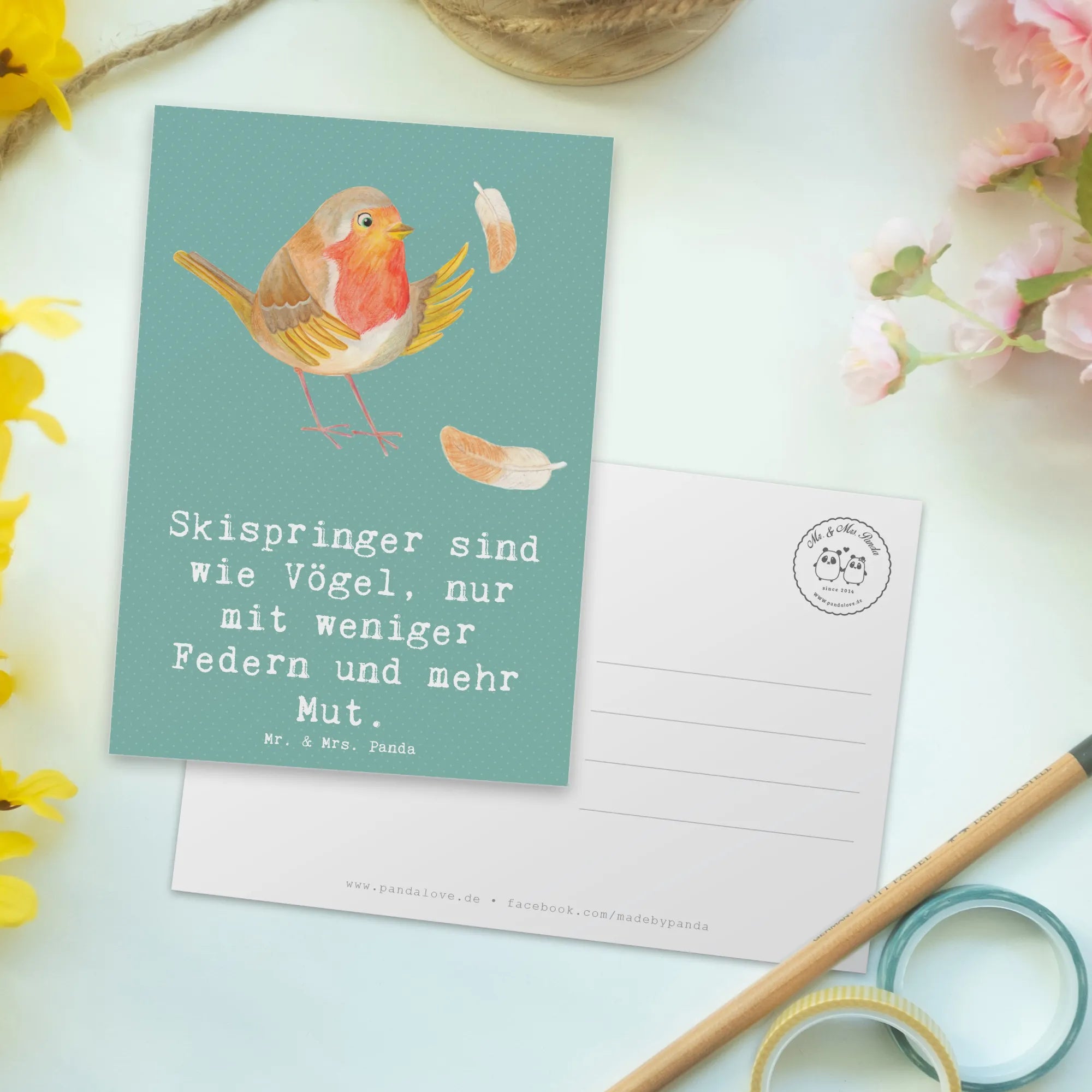 Suchst du ein besonderes Geschenk für Skisprung-Fans? Unsere Postkarte Skispringen aus der Sportarten-Kollektion von Mr. & Mrs. Panda verbindet liebevolle Aquarellillustration mit einem frechen Spruch: „Skispringer sind wie Vögel, nur mit weniger Federn und mehr Mut.“ Eine Karte, die Mut und Leidenschaft feiert und garantiert ein Lächeln auf die Lippen zaubert. 😊