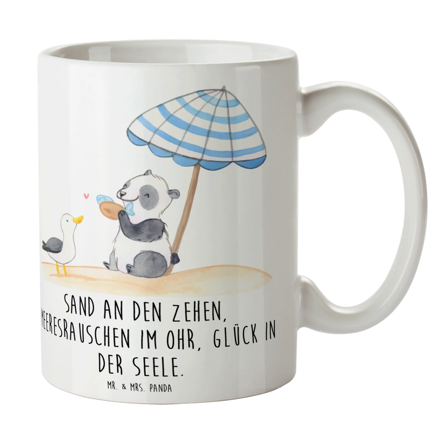 Mit unserer liebevoll gestalteten Mr. & Mrs. Panda Tasse holst Du Dir das Urlaubsgefühl direkt an den Frühstückstisch. Die fröhlichen Strandmotive und der herzliche Spruch „Sand an den Zehen, Meeresrauschen im Ohr, Glück in der Seele.“ machen jeden Schluck zum kleinen Moment der Glückseligkeit.