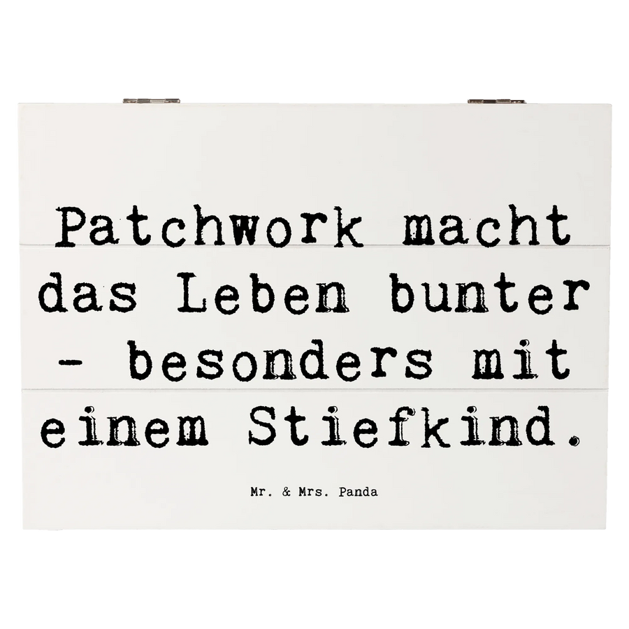 Die wunderschöne Holzkiste von Mr. & Mrs. Panda ist das perfekte Geschenk für jede moderne Patchworkfamilie. Mit einem liebevollen Spruch, der sagt: "Patchwork macht das Leben bunter - besonders mit einem Stiefkind", trägt diese Kiste zur Förderung der Familienbindung und zur Anerkennung der einzigartigen Rolle von Stiefkindern innerhalb der Familie bei.