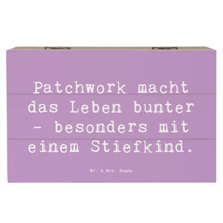 Die wunderschöne Holzkiste von Mr. & Mrs. Panda ist das perfekte Geschenk für jede moderne Patchworkfamilie. Mit einem liebevollen Spruch, der sagt: "Patchwork macht das Leben bunter - besonders mit einem Stiefkind", trägt diese Kiste zur Förderung der Familienbindung und zur Anerkennung der einzigartigen Rolle von Stiefkindern innerhalb der Familie bei.