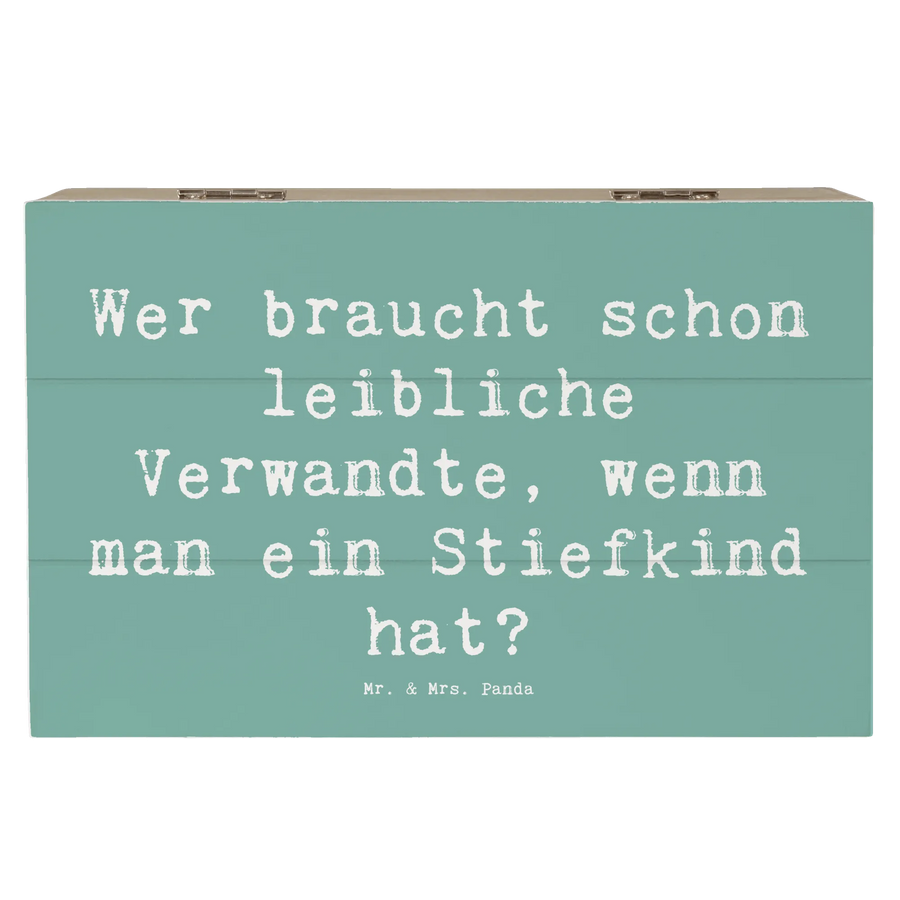 Entdecke die wundervolle Holzkiste von Mr. & Mrs. Panda, die mit dem herzlichen Spruch "Wer braucht schon leibliche Verwandte, wenn man ein Stiefkind hat?" versehen ist. Diese IXl-XXL Erinnerungskiste ist mehr als nur ein Aufbewahrungsort – sie ist ein Symbol für die Liebe und Zugehörigkeit in Patchworkfamilien.