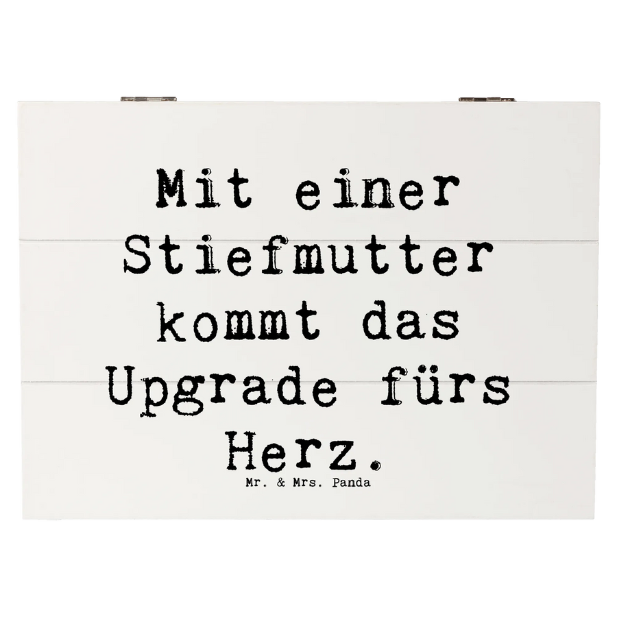 Du suchst nach dem perfekten Geschenk für deine Stiefmutter oder für ein Stiefkind? Dann ist die wunderschöne Holzkiste von Mr. & Mrs. Panda genau das Richtige! Mit dem liebevollen Spruch "Mit einer Stiefmutter kommt das Upgrade fürs Herz", wird diese Kiste zu einer bedeutungsvollen Erinnerung, die zeigt, wie wichtig diese Beziehung ist.