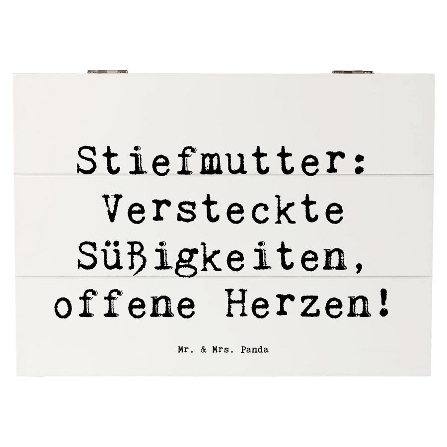 Die wunderschöne Holzkiste von Mr. & Mrs. Panda ist das perfekte Geschenk für all jene, die eine besondere Stiefmutter in ihrem Leben haben. Mit dem liebevollen Motiv 'Stiefmutter: Versteckte Süßigkeiten, offene Herzen!' wird diese Kiste zu einem echten Hingucker.