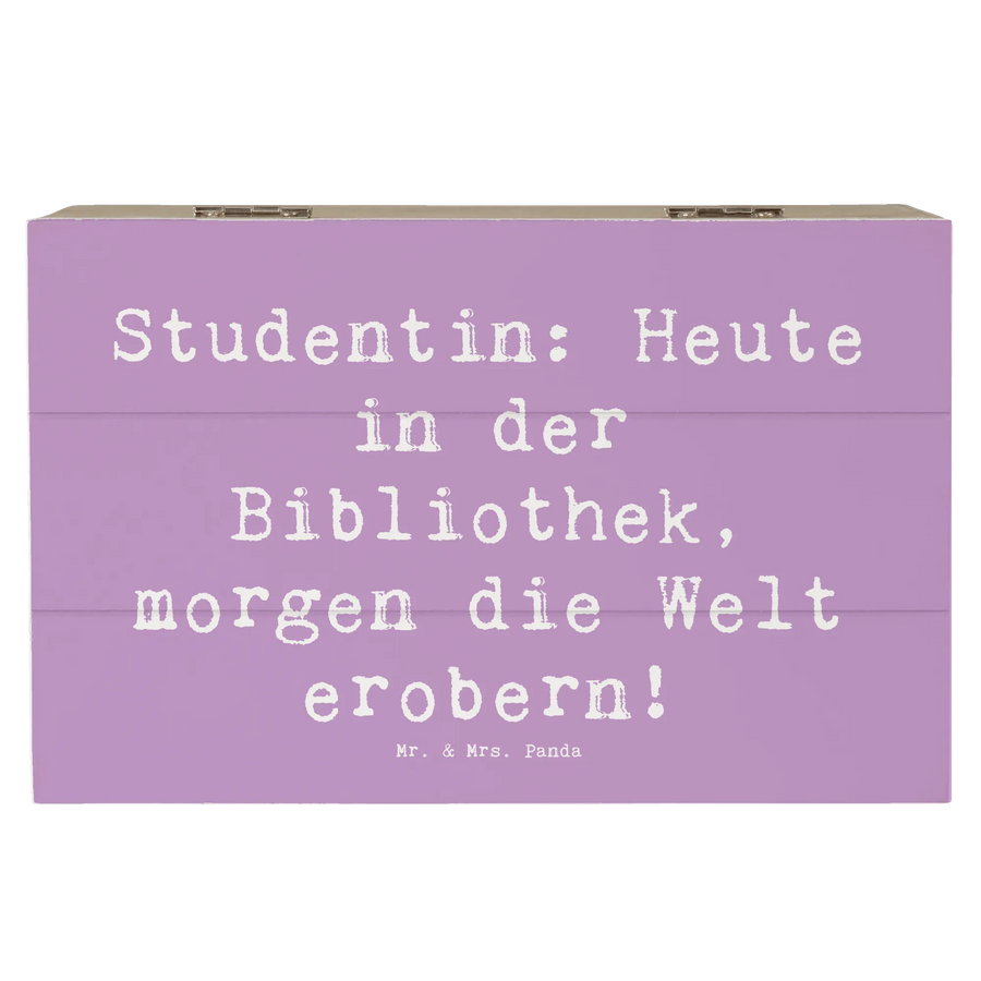 Diese wundervolle Holzkiste von Mr. & Mrs. Panda ist das perfekte Geschenk für jede Studentin! Mit dem inspirierenden Spruch "Heute in der Bibliothek, morgen die Welt erobern!" ist sie nicht nur ein schöner Blickfang, sondern auch eine praktische Aufbewahrungsbox für all ihre wertvollen Erinnerungen und Schätze.