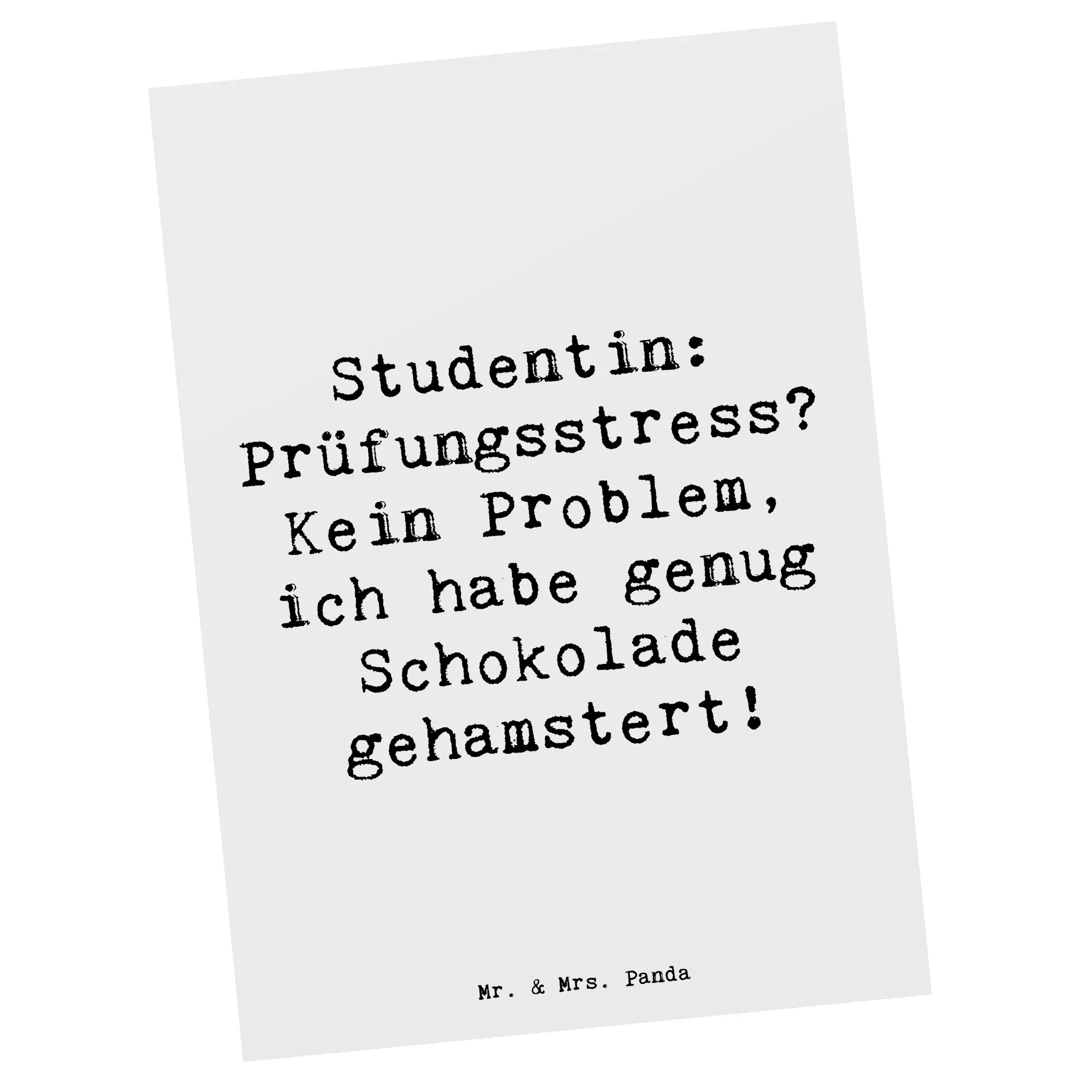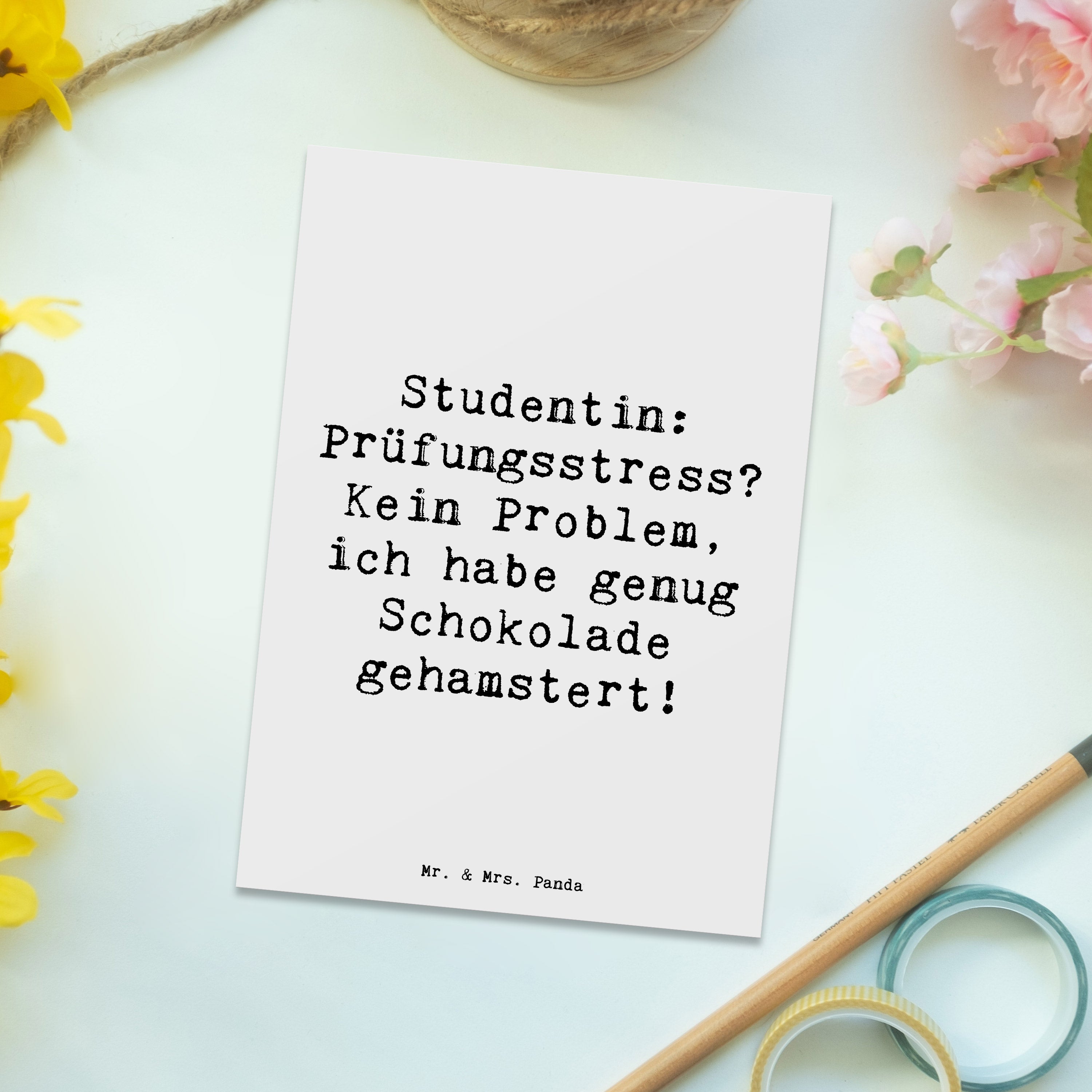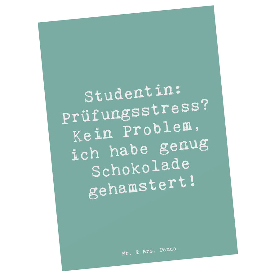 Postkarte Spruch Studentin: Prüfungsstress? Kein Problem, ich habe genug Schokolade gehamstert! - Meeresbrise