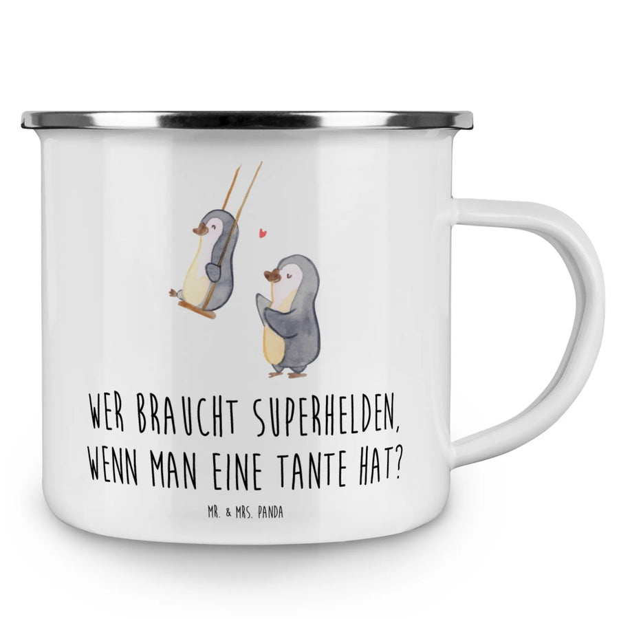 Entdecke die magische Welt der Camping Emaille Tassen von Mr. & Mrs. Panda – perfekt für jeden Campingausflug, um warmen Kaffee oder erfrischenden Tee stilvoll zu genießen! Unsere Camping Emaille Tasse mit dem herzlichen Motiv 'Tante' ist nicht nur ein super süßes Geschenk, sondern auch ein praktisches Accessoire für alle Abenteuer in der Natur. Mit dem Slogan 'Wer braucht Superhelden, wenn man eine Tante hat?' wirst Du die besonderen Momente mit Deiner Tante in der Natur unvergesslich machen.