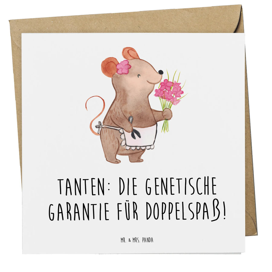 Entdecke die Deluxe Karte 'Tante' aus der liebevollen Familie & Verwandte Kollektion von Mr. & Mrs. Panda! Diese wunderschöne und hochwertige quadratische Karte ist nicht nur ein willkommener Gruß, sondern auch ein Ausdruck von Zuneigung und Wertschätzung für die besonderen Tanten in Deinem Leben. Sie misst 140 mm x 140 mm und besteht aus edlem 300 Gramm Karton, der sowohl matte als auch hochglänzende Oberflächen bietet. Mit dem Spruch "Tanten: Die genetische Garantie für Doppelspaß!" auf der Vorderseite zaubert sie jedem ein Lächeln ins Gesicht.