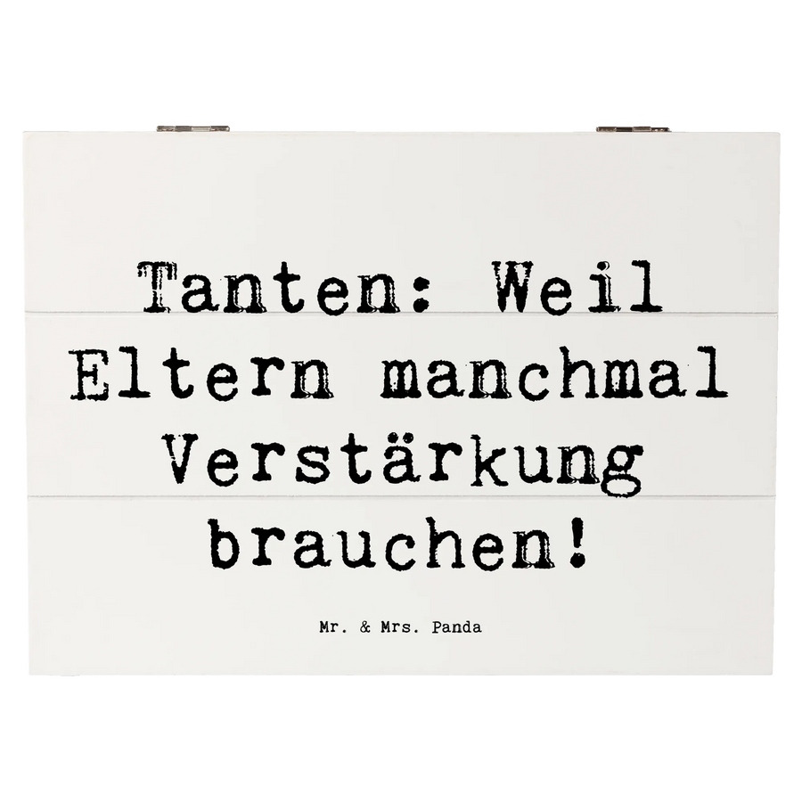 Die Botschaft 'Tanten: Weil Eltern manchmal Verstärkung brauchen!' bringt ein Lächeln auf die Gesichter und erinnert an die wundervolle Rolle, die Tanten im Leben ihrer Nichten und Neffen spielen. Lass die besonderen Momente wieder aufleben, indem du diese einzigartige Holzkiste verschenken oder selbst nutzen möchtest!