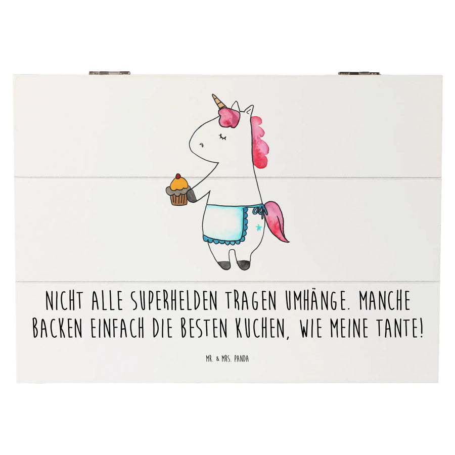 Diese wunderschöne Holzkiste von Mr. & Mrs. Panda, bedruckt mit dem liebevollen Motiv "Nicht alle Superhelden tragen Umhänge. Manche backen einfach die besten Kuchen, wie meine Tante!", ist das perfekte Geschenk für Tanten, Nichten und Neffen. Ob zum Geburtstag, zu einem besonderen Anlass oder einfach nur als Dankeschön – diese Erinnerungskiste ist ein echter Schatz.