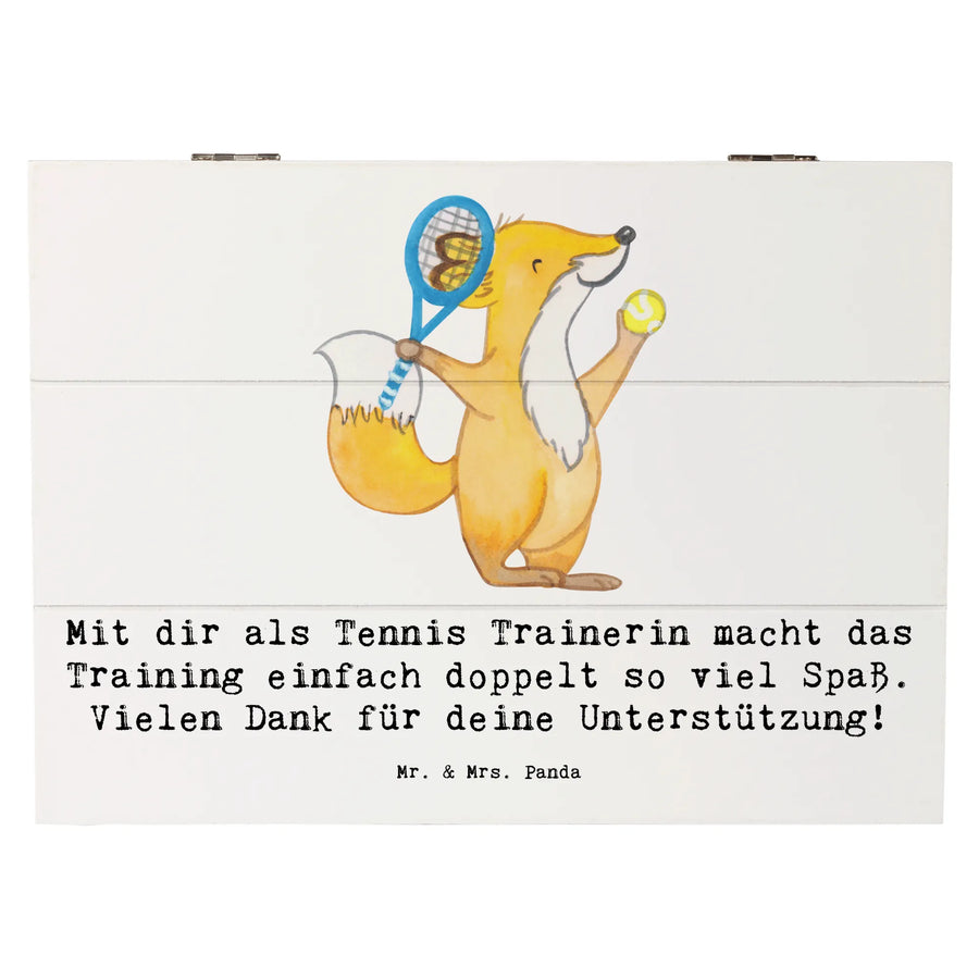 Perfektes Geschenk für Tennis-Trainerinnen: Unsere Holzkiste „Tennis Trainerin“ von Mr. & Mrs. Panda verbindet Herz und Funktion. Bedruckt mit dem liebevollen Spruch „Mit dir als Tennis Trainerin macht das Training einfach doppelt so viel Spaß. Vielen Dank für deine Unterstützung!” ist diese Aufbewahrungsbox Holz das ideale Dankeschön für Trainerin, Co-Trainerin oder Coach.
