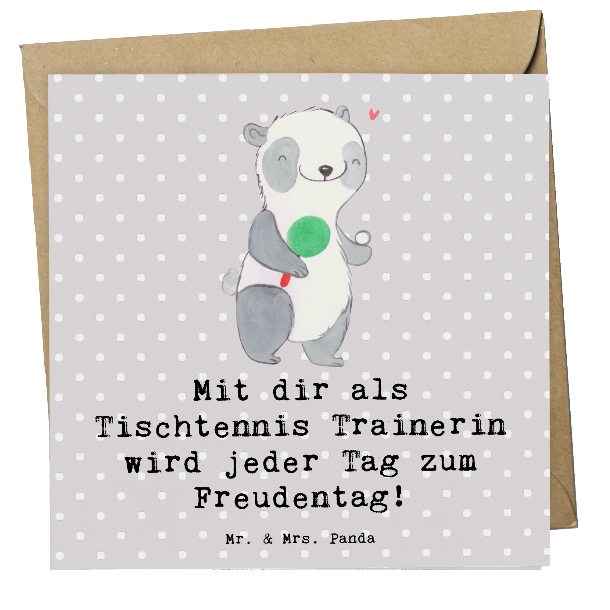 Die Deluxe Karte "Tischtennis Trainerin" aus der Mr. & Mrs. Panda Kollektion ist das perfekte Geschenk, um deine Wertschätzung für die Trainerin zu zeigen. Egal ob zum Geburtstag, als Dankeschön oder einfach nur so - diese wirklich hochwertige quadratische Grußkarte ist ideal, um liebevolle Worte zu übermitteln.