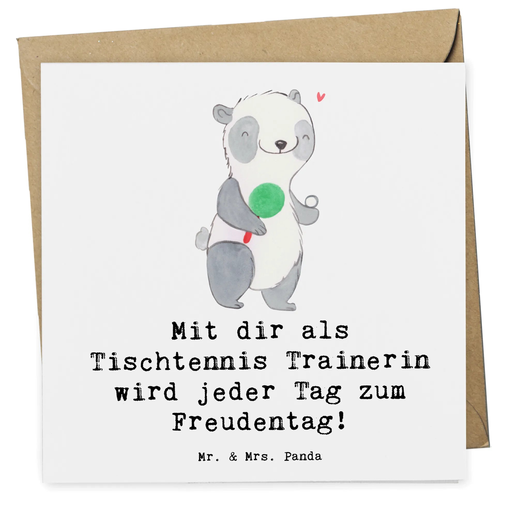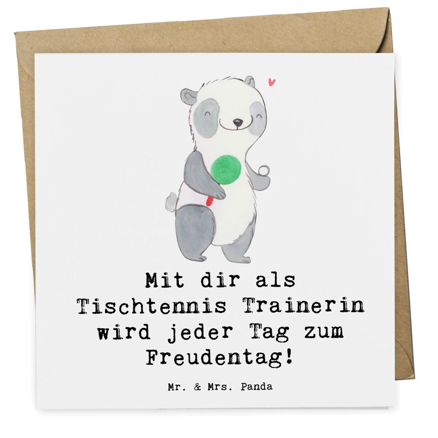 Diese wundervolle, hochwertige quadratische Karte von Mr. & Mrs. Panda ist nicht nur ein schöner Glückwunsch, sondern auch eine ganz persönliche Geste für alle Anlässe. Ob zum Geburtstag, zur Verabschiedung oder einfach als Dankeschön – mit dieser Karte zeigst du deiner Trainerin, wie viel sie dir bedeutet. Der liebevoll gestaltete Spruch "Mit dir als Tischtennis Trainerin wird jeder Tag zum Freudentag!" zaubert garantiert ein Lächeln auf ihr Gesicht.
