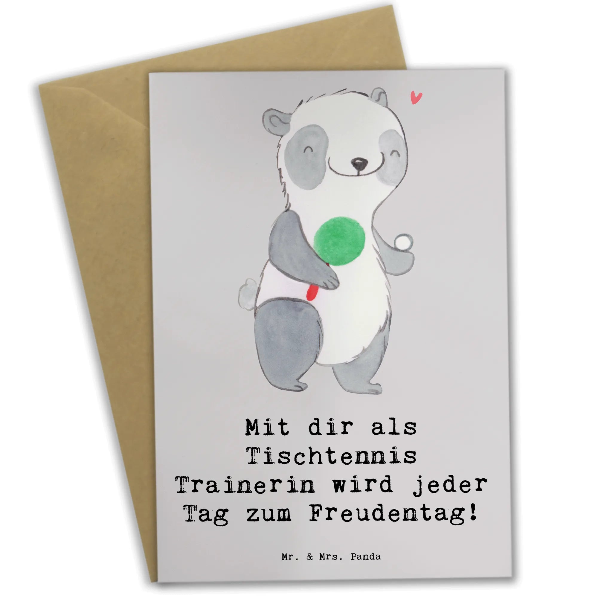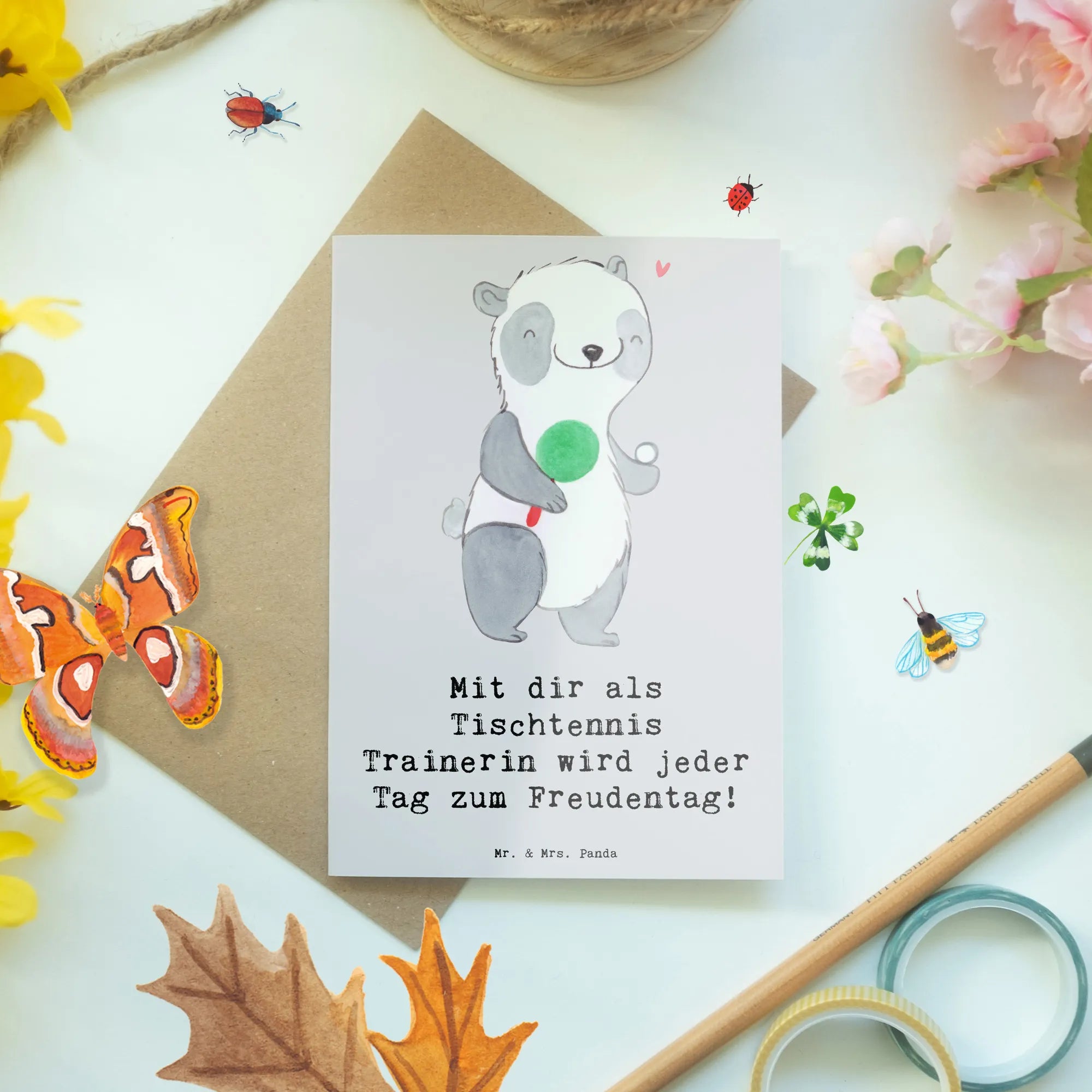 Du suchst nach dem perfekten Geschenk für deine Tischtennis Trainerin? Dann ist unsere wunderschöne Grußkarte von Mr. & Mrs. Panda genau das Richtige! Mit dem liebevollen Motiv „Tischtennis Trainerin“ und dem Spruch "Mit dir als Tischtennis Trainerin wird jeder Tag zum Freudentag!" bringt diese Karte ein Lächeln auf die Gesichter aller Trainerinnen. Ob als Dankeschön nach einer herausragenden Saison, als Abschiedsgeschenk oder einfach als kleine Anerkennung – diese Karte überzeugt in jedem Fall!