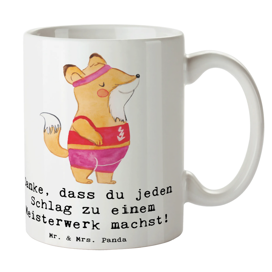 Du suchst nach dem perfekten Geschenk für deine Tischtennis Trainerin? Dann ist die charmante Kaffeetasse aus der Mr. & Mrs. Panda Kollektion genau das Richtige für dich! Mit dem liebevoll gestalteten Motiv "Danke, dass du jeden Schlag zu einem Meisterwerk machst!" bringt diese Tasse ein Lächeln ins Gesicht jeder Trainerin, die mit Herz und Leidenschaft ihr Wissen teilt.