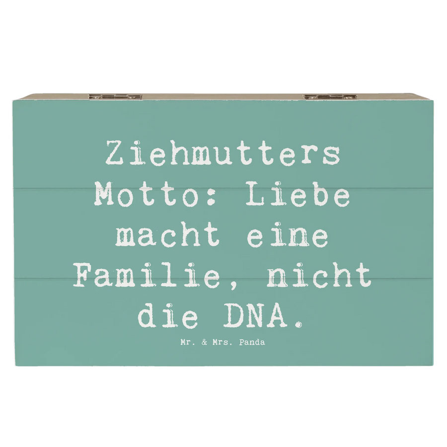 Die Holzkiste "Ziehmutter" von Mr. & Mrs. Panda ist das perfekte Geschenk für eine Frau, die große Liebe in das Leben ihrer Stief- oder Adoptivkinder bringt. Mit dem liebevollen Spruch "Ziehmutters Motto: Liebe macht eine Familie, nicht die DNA." zeigt diese schöne Erinnerungskiste, wie wichtig diese besonderen Beziehungen sind.