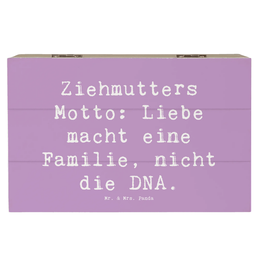 Die Holzkiste "Ziehmutter" von Mr. & Mrs. Panda ist das perfekte Geschenk für eine Frau, die große Liebe in das Leben ihrer Stief- oder Adoptivkinder bringt. Mit dem liebevollen Spruch "Ziehmutters Motto: Liebe macht eine Familie, nicht die DNA." zeigt diese schöne Erinnerungskiste, wie wichtig diese besonderen Beziehungen sind.