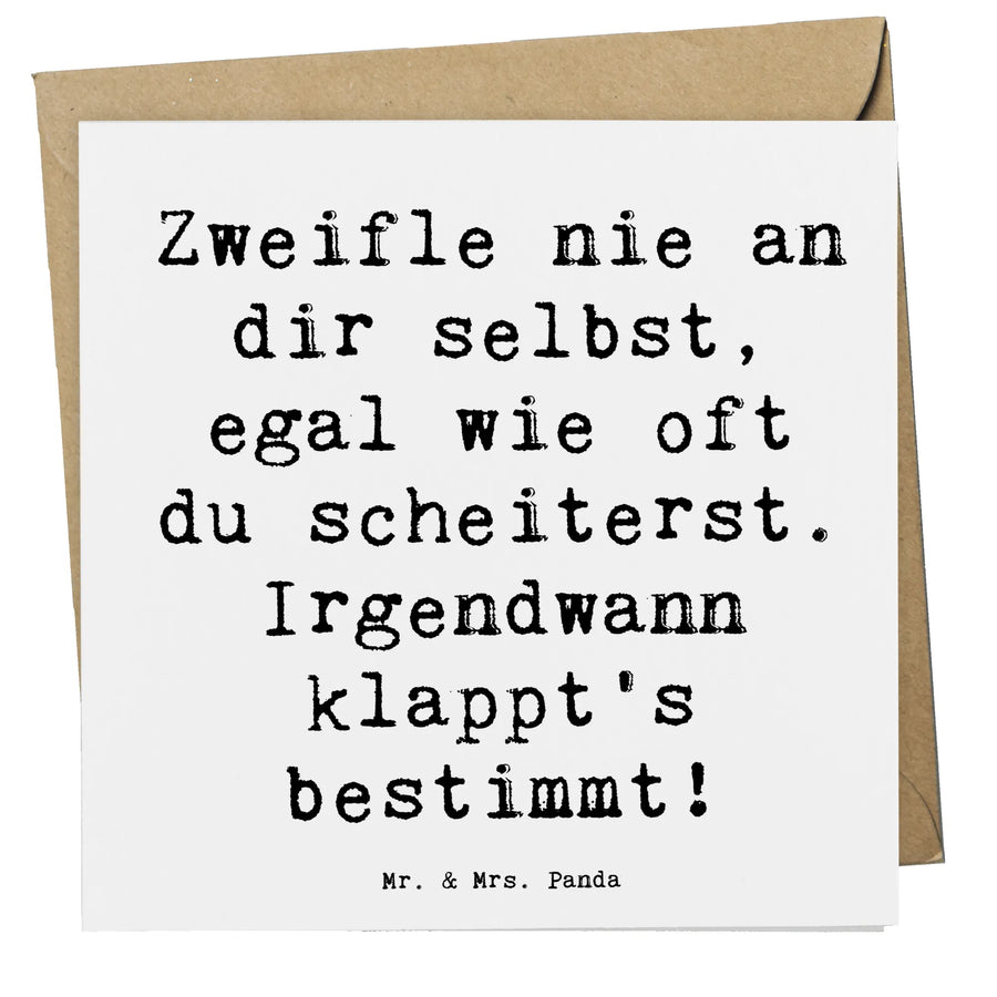 Ob zum Geburtstag, zur Hochzeit oder einfach um jemandem eine Freude zu machen – diese Karte ist für jeden feierlichen Anlass geeignet! Der eingedruckte Spruch "Zweifle nie an dir selbst, egal wie oft du scheiterst. Irgendwann klappt's bestimmt!" ist eine wunderbare Ermutigung für Freunde, Familie oder Bekannte. Der edle Umschlag, der inklusiv zur Karte kommt, rundet das Ganze ab und macht das Verschenken noch einfacher.