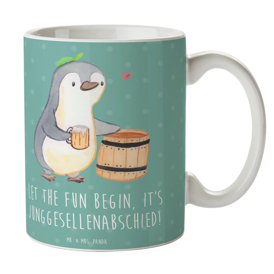 Entdecke die perfekte Tasse für den Junggesellenabschied aus der zauberhaften Hochzeitskollektion von Mr. & Mrs. Panda! Diese wunderschöne Keramiktasse mit dem Spruch 'Let the fun begin, it's Junggesellenabschied!' ist ein echtes Must-have für jeden zukünftigen Bräutigam und seine Freunde. Ob beim Feiern mit den Kumpels oder beim entspannten Kaffeetrinken am nächsten Morgen – diese Tasse sorgt für gute Laune und unvergessliche Erinnerungen!