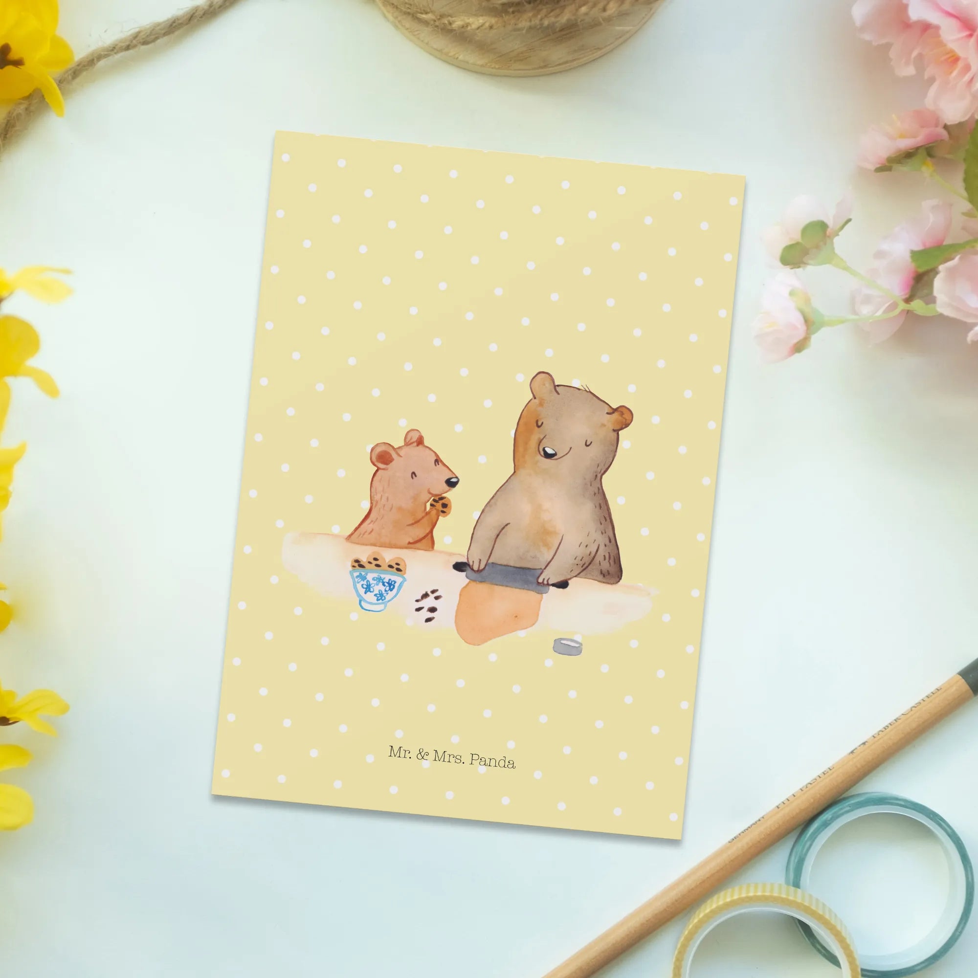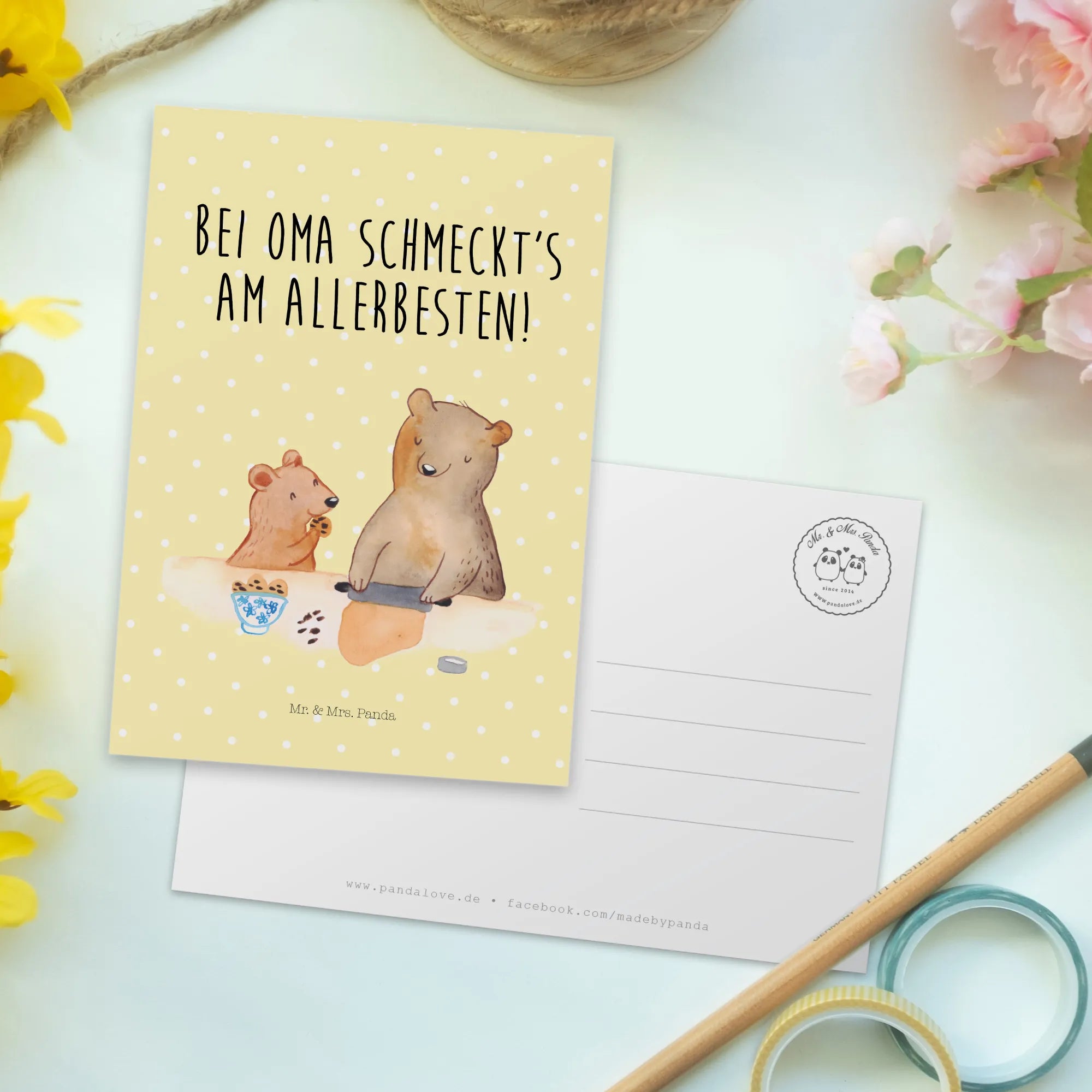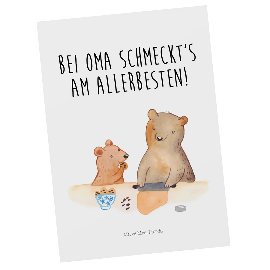 Stell dir vor, du hast eine liebevolle Erinnerungsbotschaft in der Hand, die perfekt für deine Oma ist! Unsere Postkarte "Oma Bär backen" aus der Familien Kollektion von Mr. & Mrs. Panda ist mehr als nur ein Stück Papier – sie ist ein kleiner Gruß aus dem Herzen.