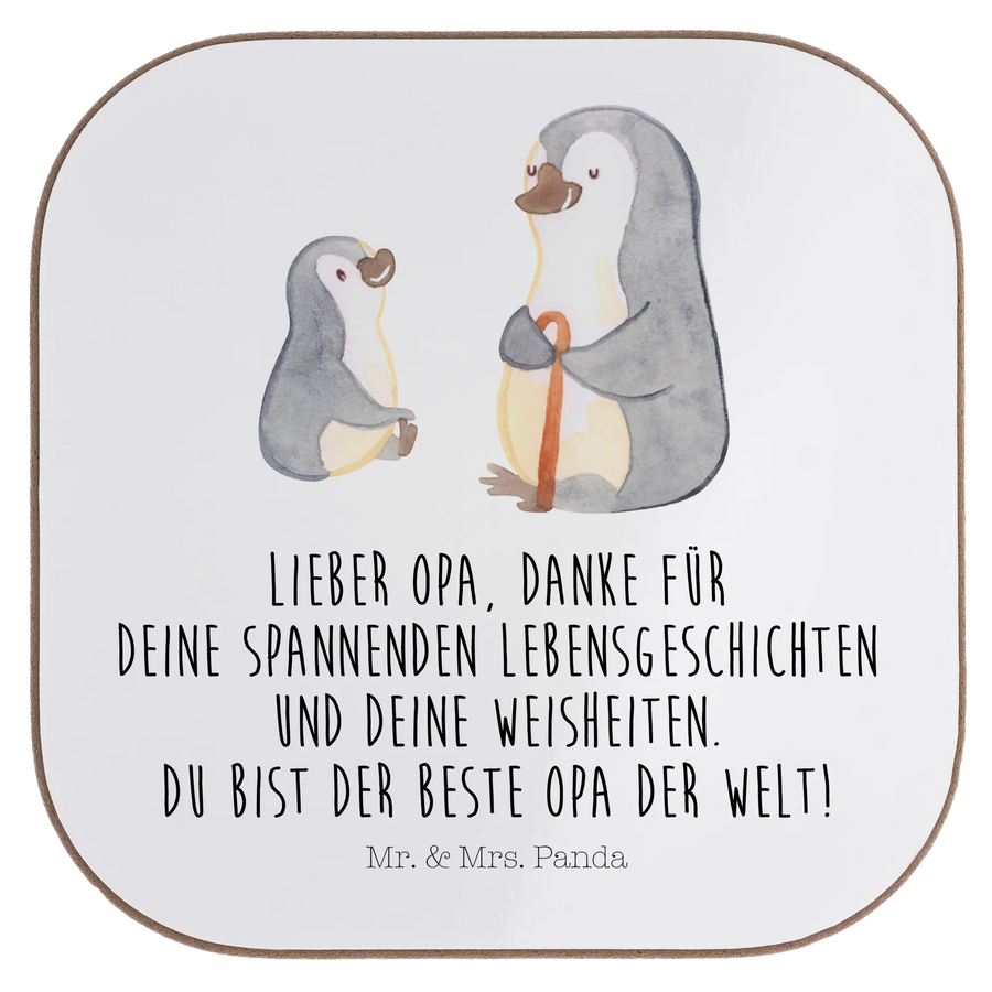 Der Untersetzer Pinguin Opa Enkel von Mr. & Mrs. Panda ist das perfekte Geschenk für den besten Opa der Welt! Er wurde mit viel Liebe und einem süßen Motiv gestaltet, das die besondere Bindung zwischen Großeltern und Enkeln in einer warmen, familiären Szene darstellt. Der größere Pinguin, vermutlich der Opa, blickt liebevoll auf den kleineren Pinguin, der seinen Großvater bewundernd ansieht. Dieses niedliche Bild bringt harmonische Gefühle der Zuneigung und Geborgenheit zum Ausdruck.