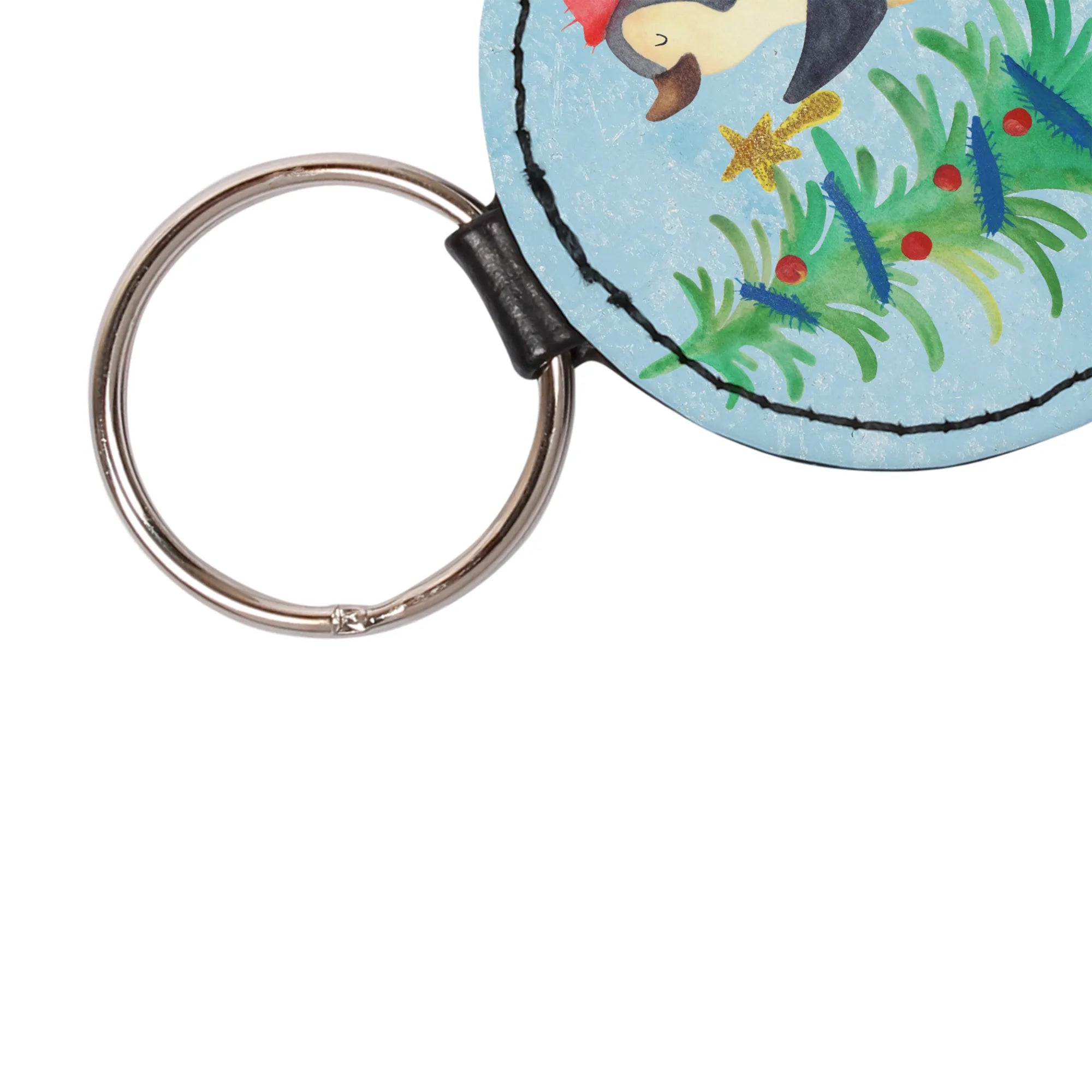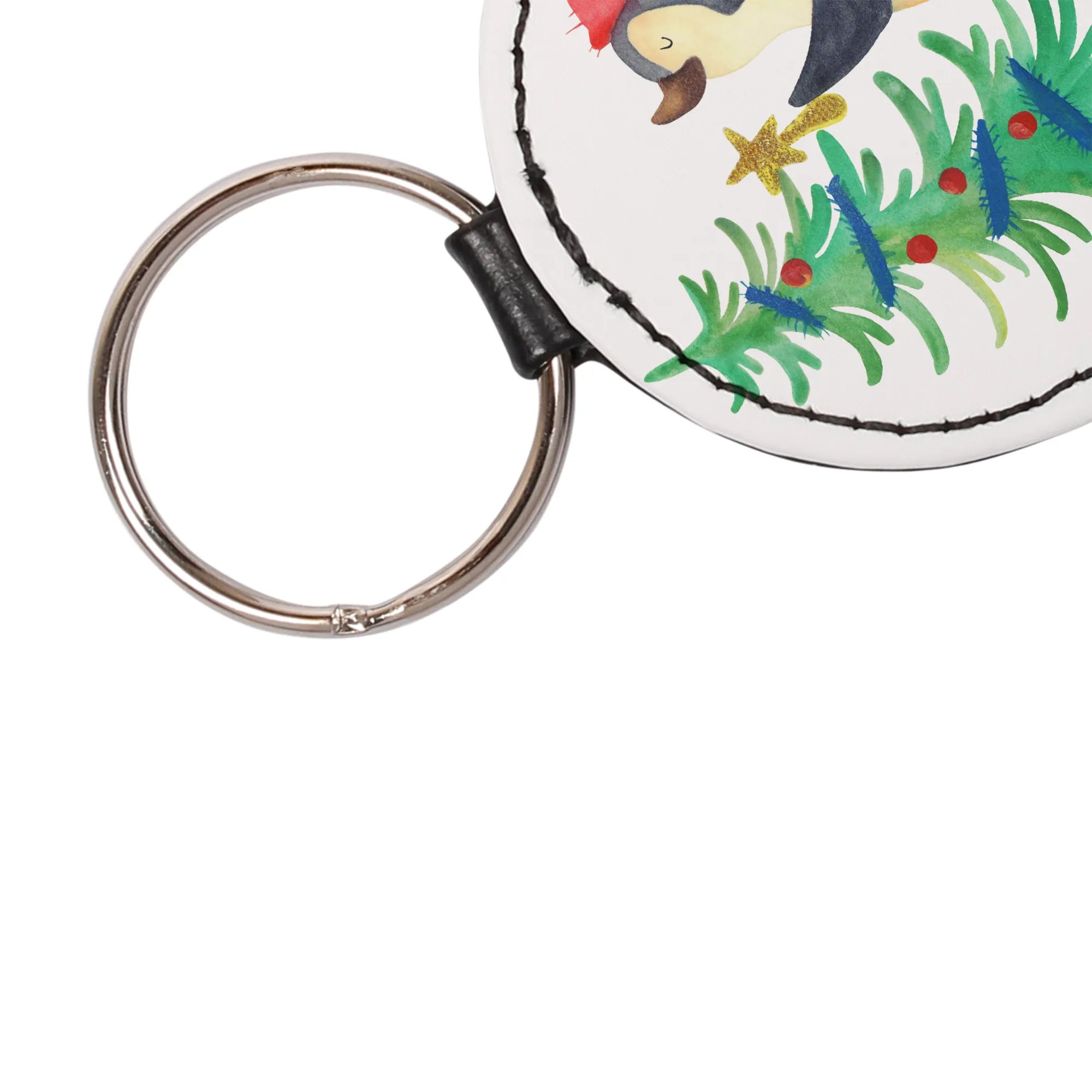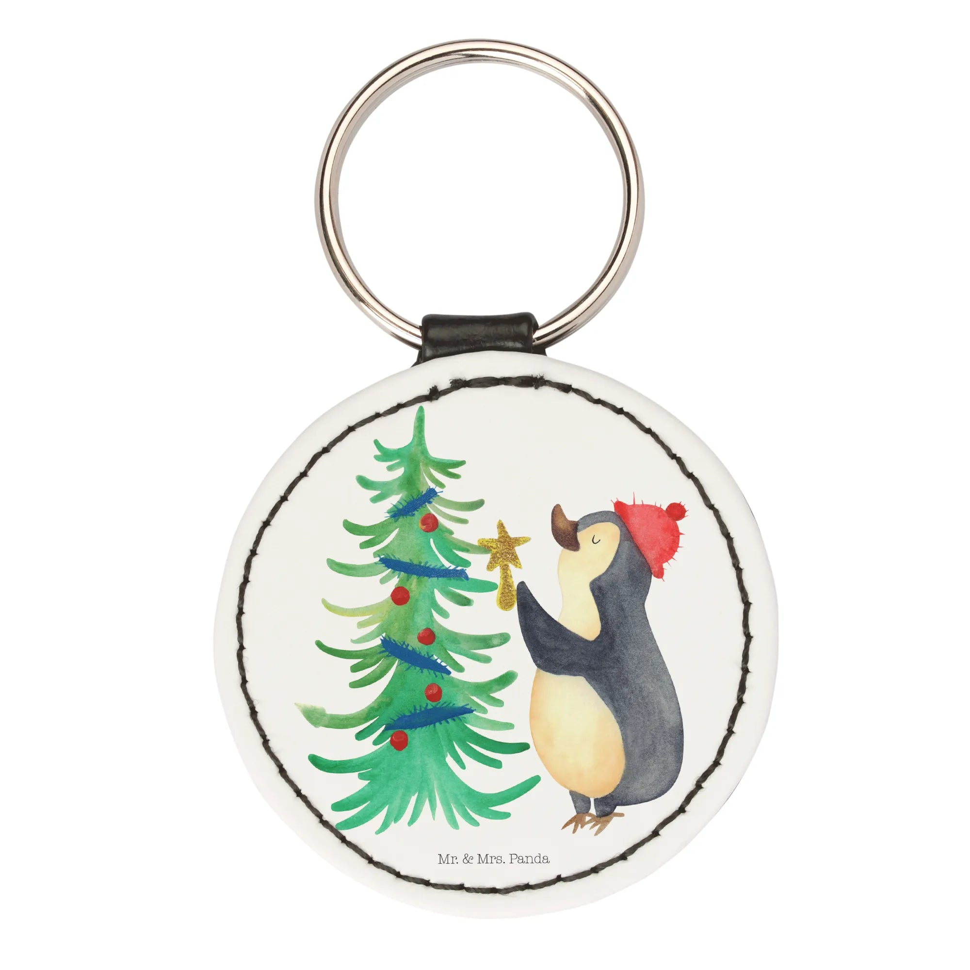 Rund Schlüsselanhänger Pinguin Weihnachtsbaum - Weiß