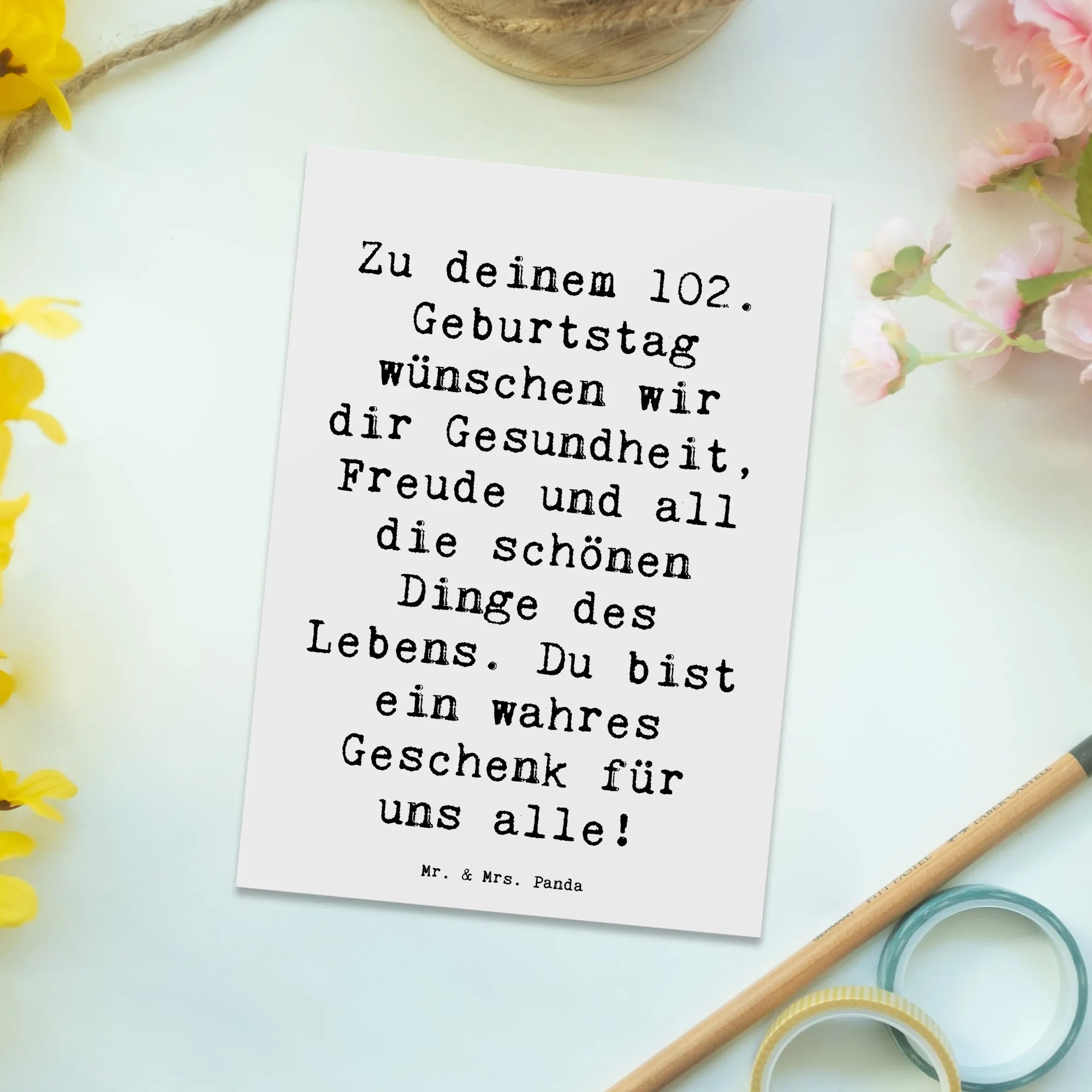 Unsere Panda-Fans suchen auch nach: 102. Geburtstag, Gesundheit, Freude, schöne Dinge des Lebens, Geschenk, Erinnerungen, liebevolle Momente, strahlende Persönlichkeit, unendliche Wärme, Ehrentag, lieben Menschen, Glück, inspirieren, dankbar, unvergesslich, gesegneter Geburtstag