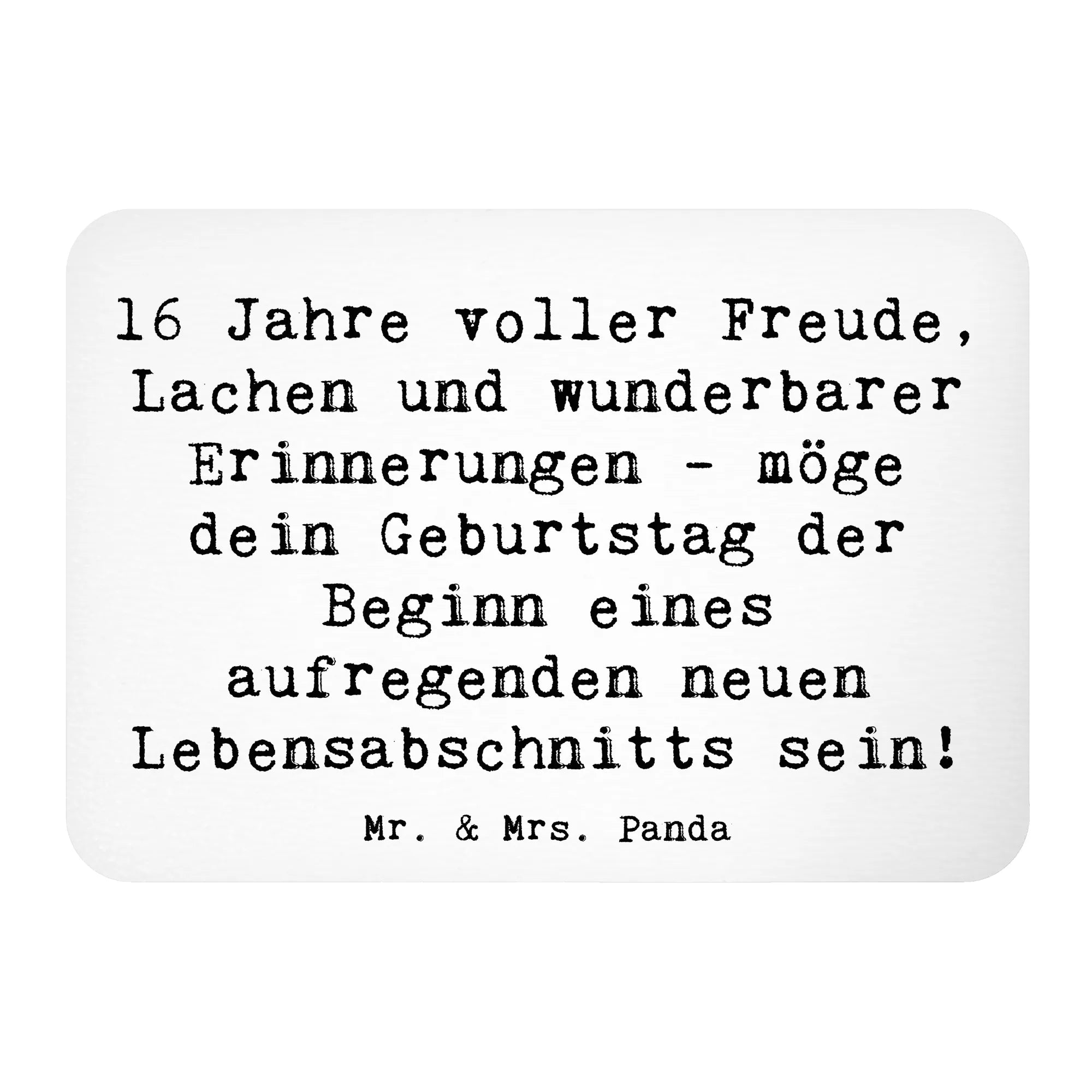 Der wunderschöne Kühlschrankmagnet von Mr. & Mrs. Panda mit dem Motiv "16 Jahre voller Freude, Lachen und wunderbarer Erinnerungen - möge dein Geburtstag der Beginn eines aufregenden neuen Lebensabschnitts sein!" ist das perfekte Geschenk zum 16. Geburtstag. Er wurde mit viel Liebe gestaltet und ist ein echter Hingucker in jeder Küche!