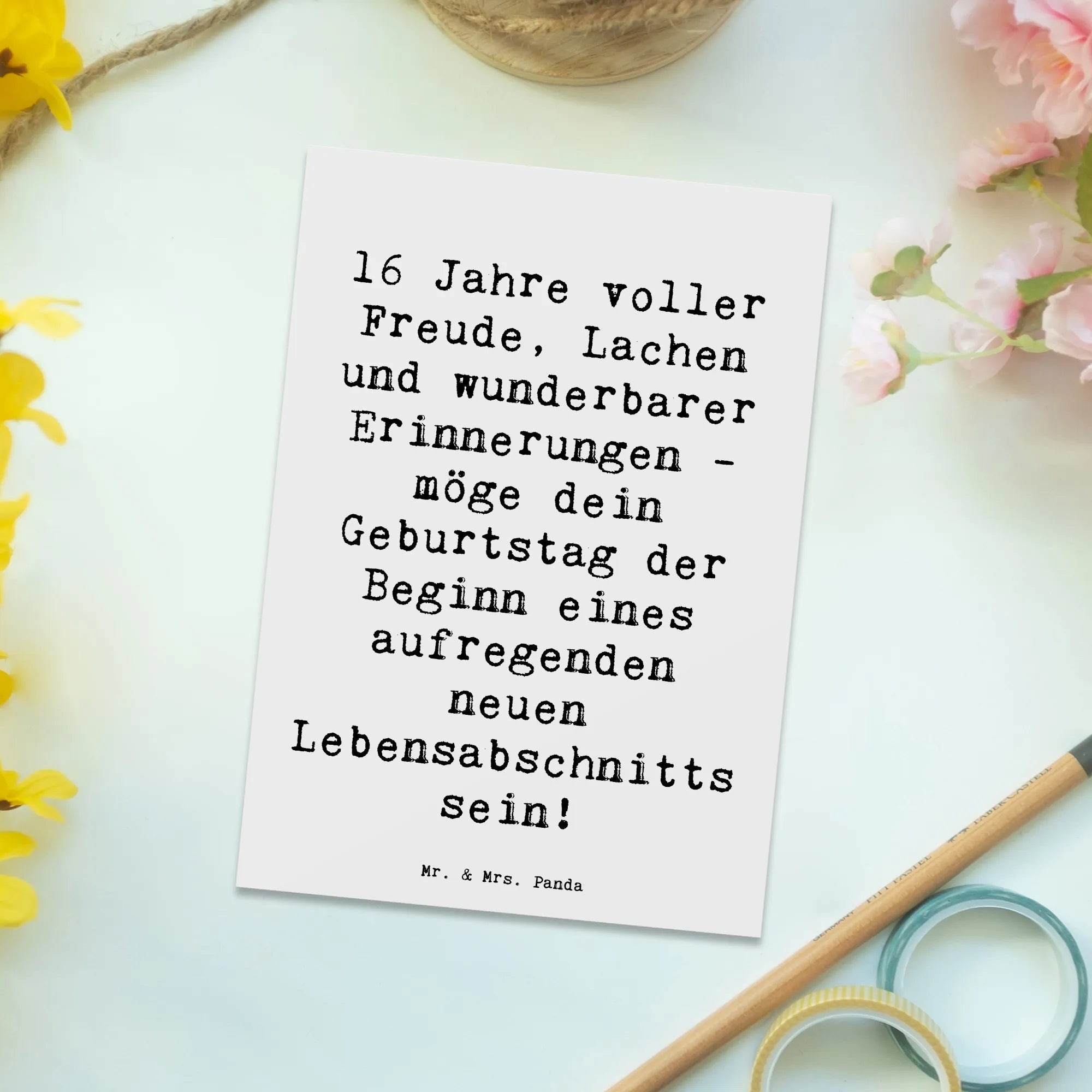 Suchst du ein liebevolles, kleines Geschenk für den 16. Geburtstag? Unsere Postkarte aus der Mr. & Mrs. Panda Geburtstagskollektion ist die perfekte Wahl. Mit dem warmen Spruch „16 Jahre voller Freude, Lachen und wunderbarer Erinnerungen - möge dein Geburtstag der Beginn eines aufregenden neuen Lebensabschnitts sein!“ bringst du deine Glückwünsche auf den Punkt und zauberst ein Lächeln ins Gesicht. 🎉