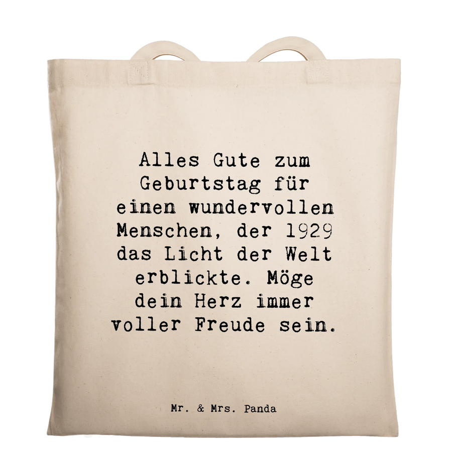 Tragetasche Spruch Alles Gute zum Geburtstag für einen wundervollen Menschen, der 1929 das Licht der Welt erblickte. Möge dein Herz immer voller Freude sein. - Transparent