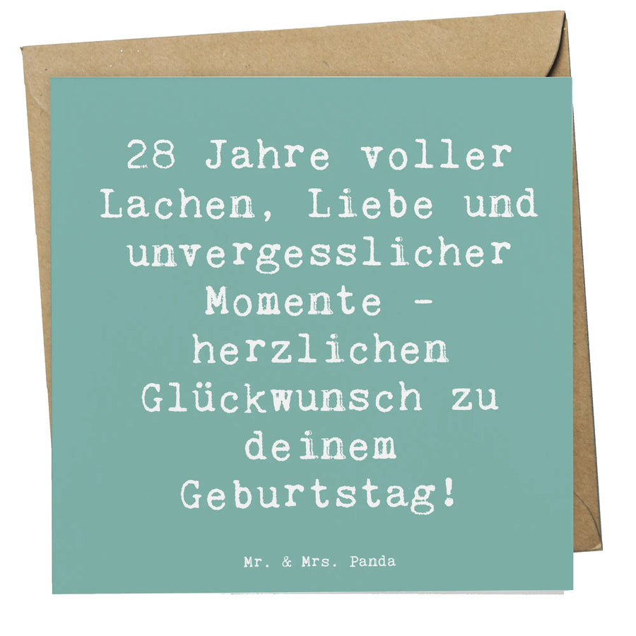Die Deluxe Karte zum 28. Geburtstag aus der Geburtstag Alter Kollektion von Mr. & Mrs. Panda ist das perfekte Geschenk für alle, die diesen besonderen Tag gebührend feiern möchten. Mit ihrem liebevollen Design und dem herzlichen Slogan '28 Jahre voller Lachen, Liebe und unvergesslicher Momente - herzlichen Glückwunsch zu deinem Geburtstag!' bringt diese Grußkarte jedem Geburtstagskind ein Lächeln ins Gesicht.