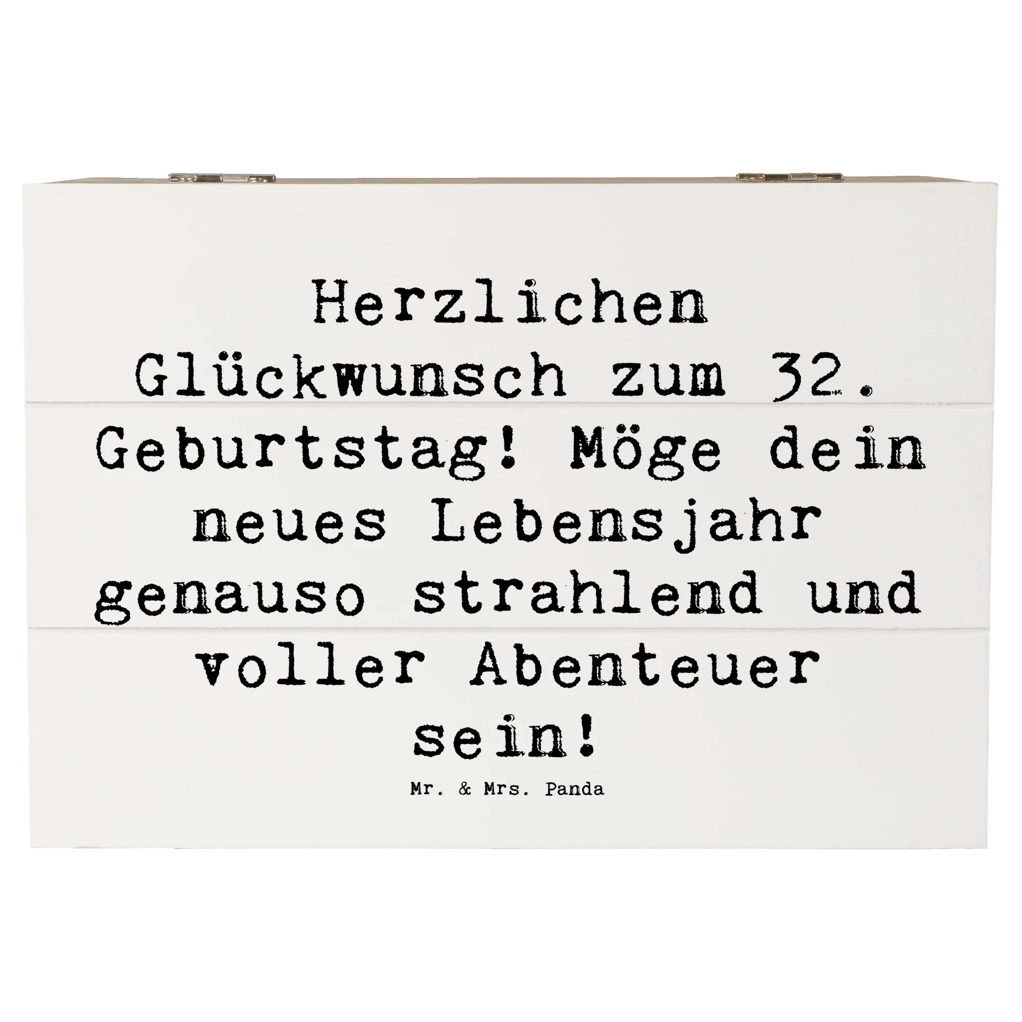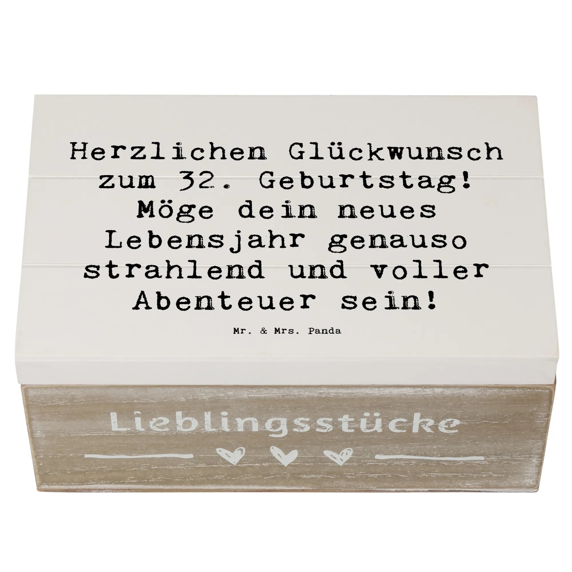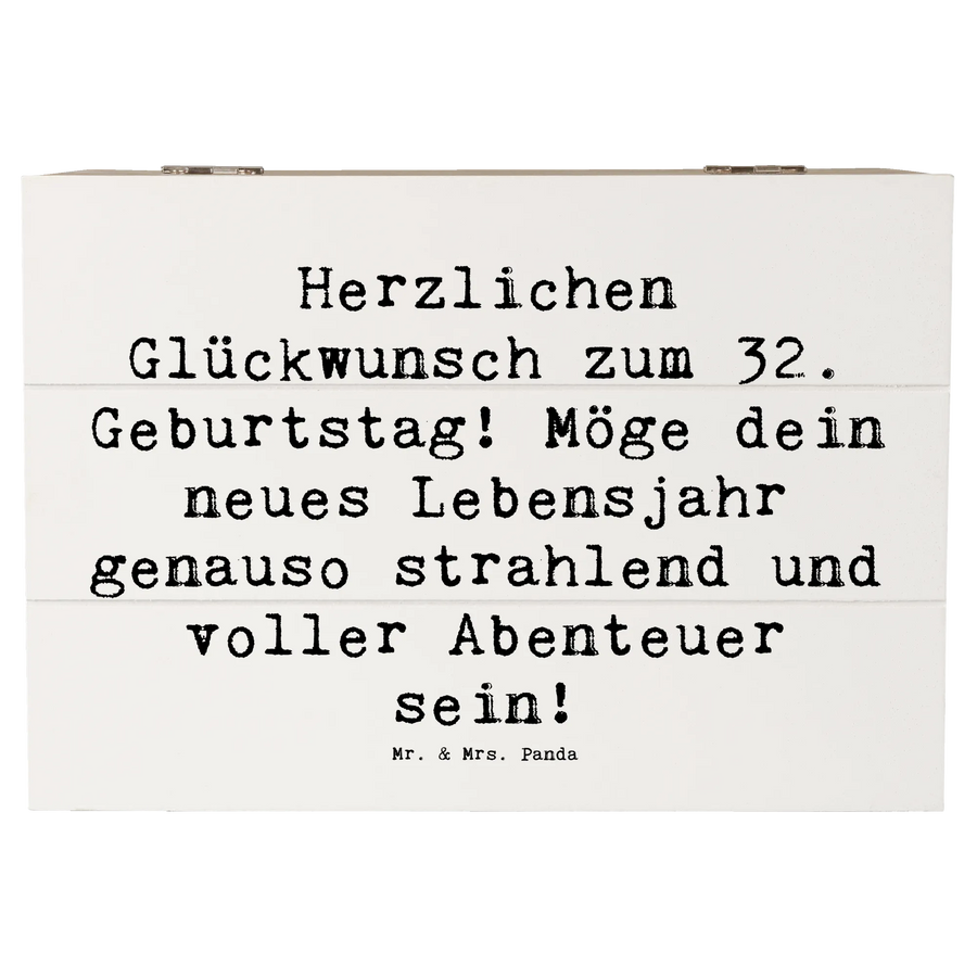 Die wunderschöne Holzkiste von Mr. & Mrs. Panda ist das perfekte Geschenk zum 32. Geburtstag! Der Slogan "Herzlichen Glückwunsch zum 32. Geburtstag! Möge dein neues Lebensjahr genauso strahlend und voller Abenteuer sein!" verleiht dieser Kiste eine persönliche Note, die jeden Beschenkten erfreuen wird. Hergestellt aus robuster Holzfaser, ist diese Kiste nicht nur stabil, sondern auch ein stilvolles Accessoire für jeden Raum.