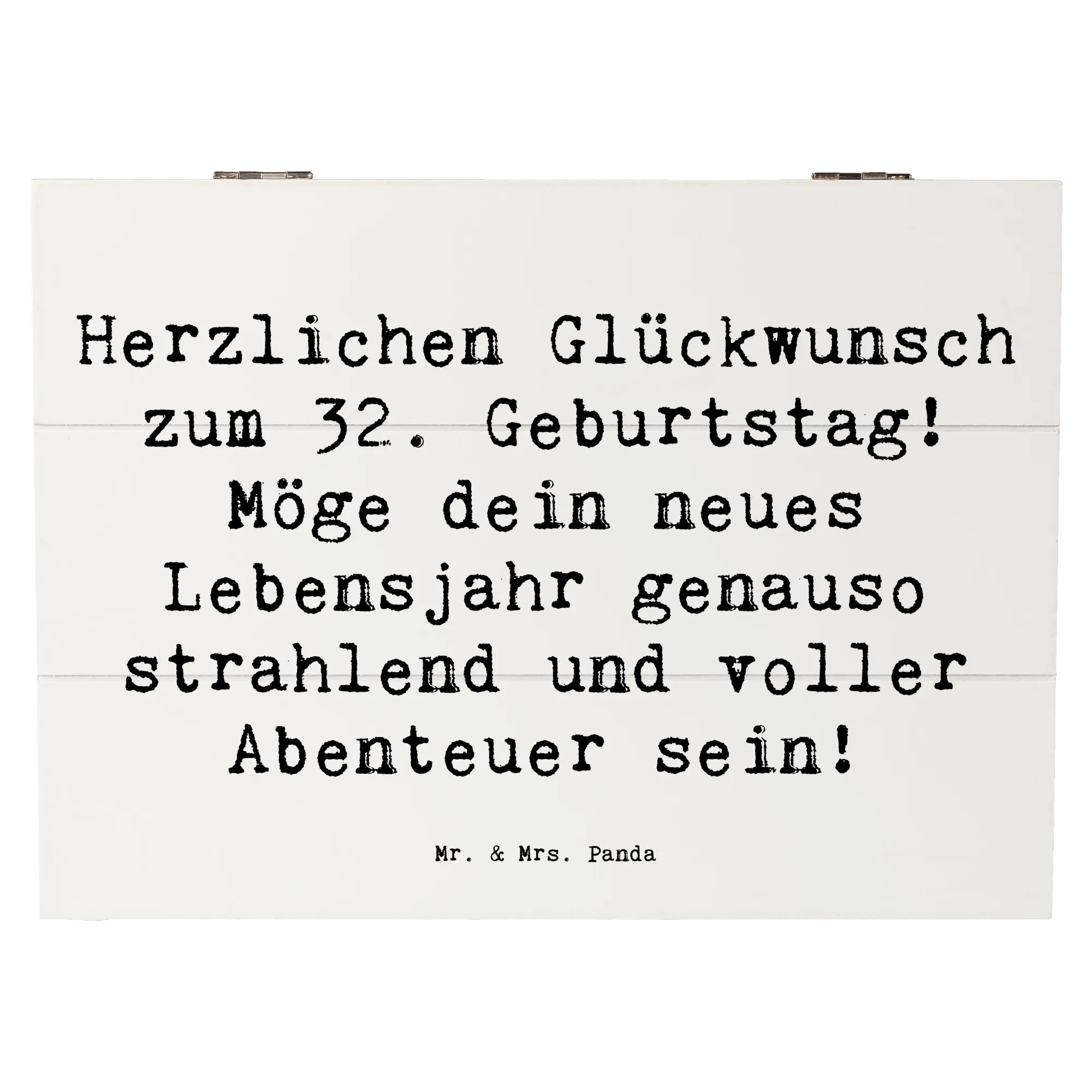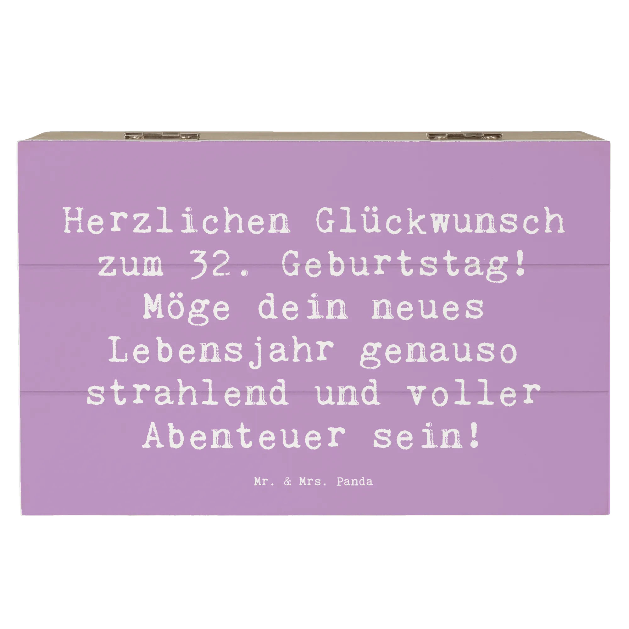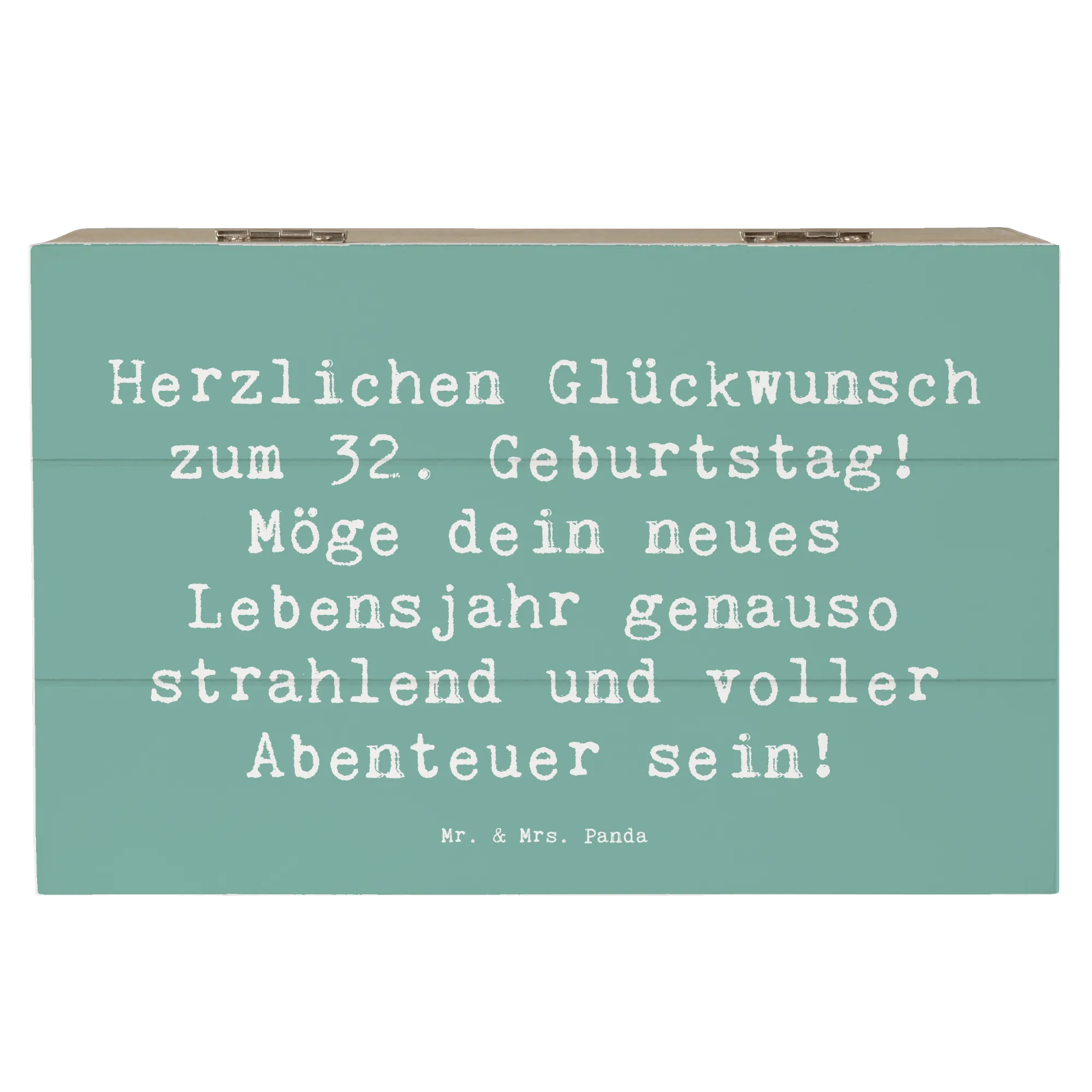 Die wunderschöne Holzkiste von Mr. & Mrs. Panda ist das perfekte Geschenk zum 32. Geburtstag! Der Slogan "Herzlichen Glückwunsch zum 32. Geburtstag! Möge dein neues Lebensjahr genauso strahlend und voller Abenteuer sein!" verleiht dieser Kiste eine persönliche Note, die jeden Beschenkten erfreuen wird. Hergestellt aus robuster Holzfaser, ist diese Kiste nicht nur stabil, sondern auch ein stilvolles Accessoire für jeden Raum.