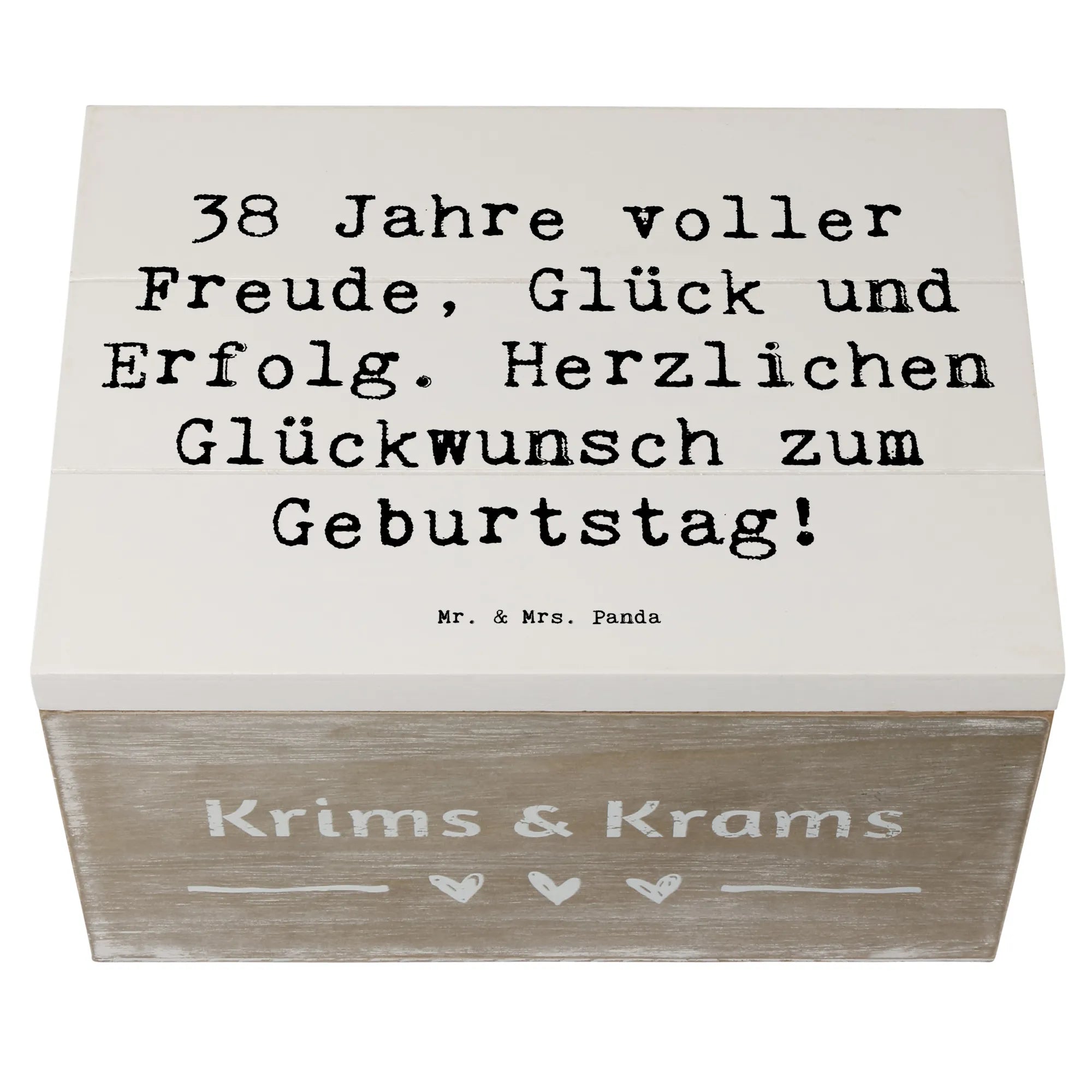 Du suchst nach einem perfekten Geschenk zum 38. Geburtstag? Unsere liebevolle Holzkiste von Mr. & Mrs. Panda ist genau das, was du brauchst. Mit dem liebevollen Spruch "38 Jahre voller Freude, Glück und Erfolg. Herzlichen Glückwunsch zum Geburtstag!" wird diese schöne Schatzkiste zum ganz besonderen Highlight.