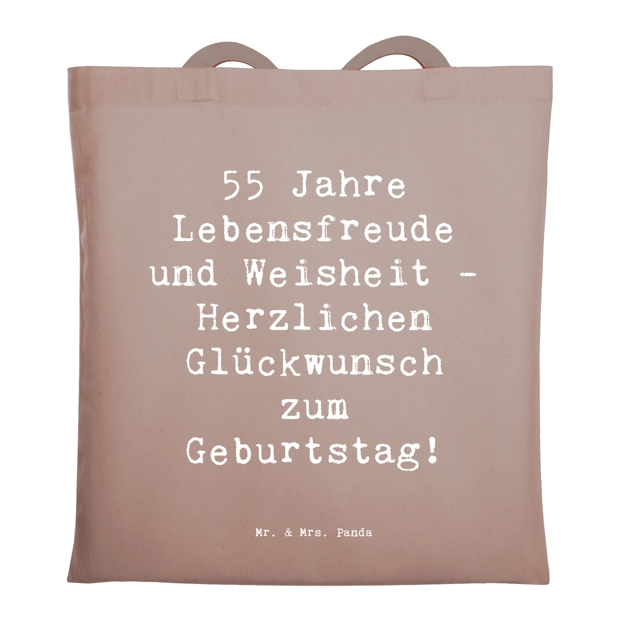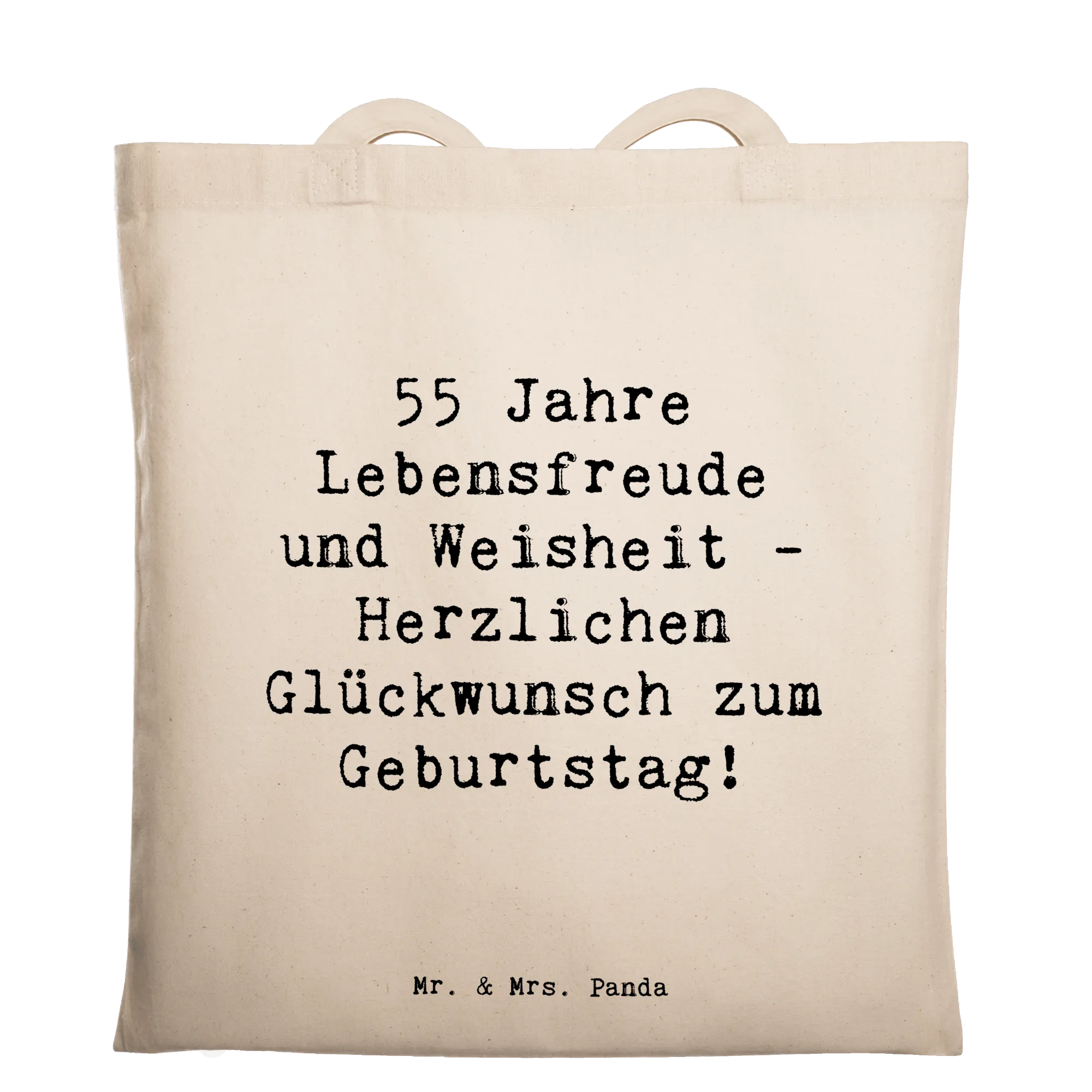 Die wunderschöne Tragetasche von Mr. & Mrs. Panda ist das perfekte Geschenk zum 55. Geburtstag! Mit dem herzlichen Spruch "55 Jahre Lebensfreude und Weisheit - Herzlichen Glückwunsch zum Geburtstag!" ist sie nicht nur praktisch, sondern auch eine charmante Erinnerung an diesen besonderen Tag.