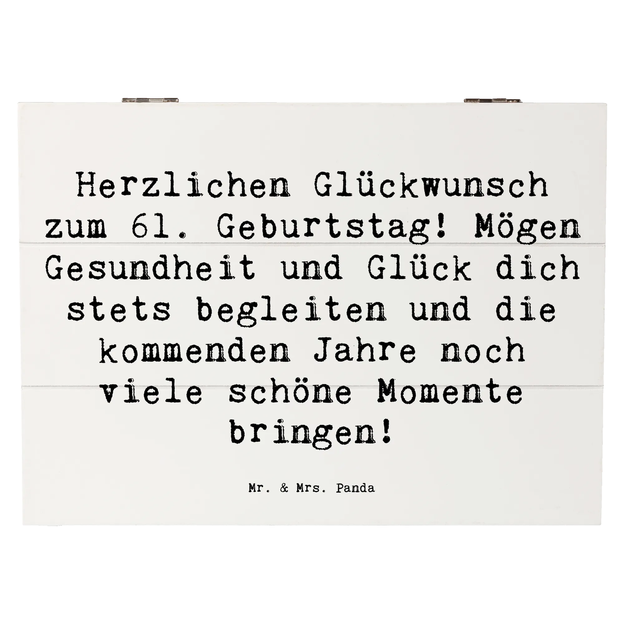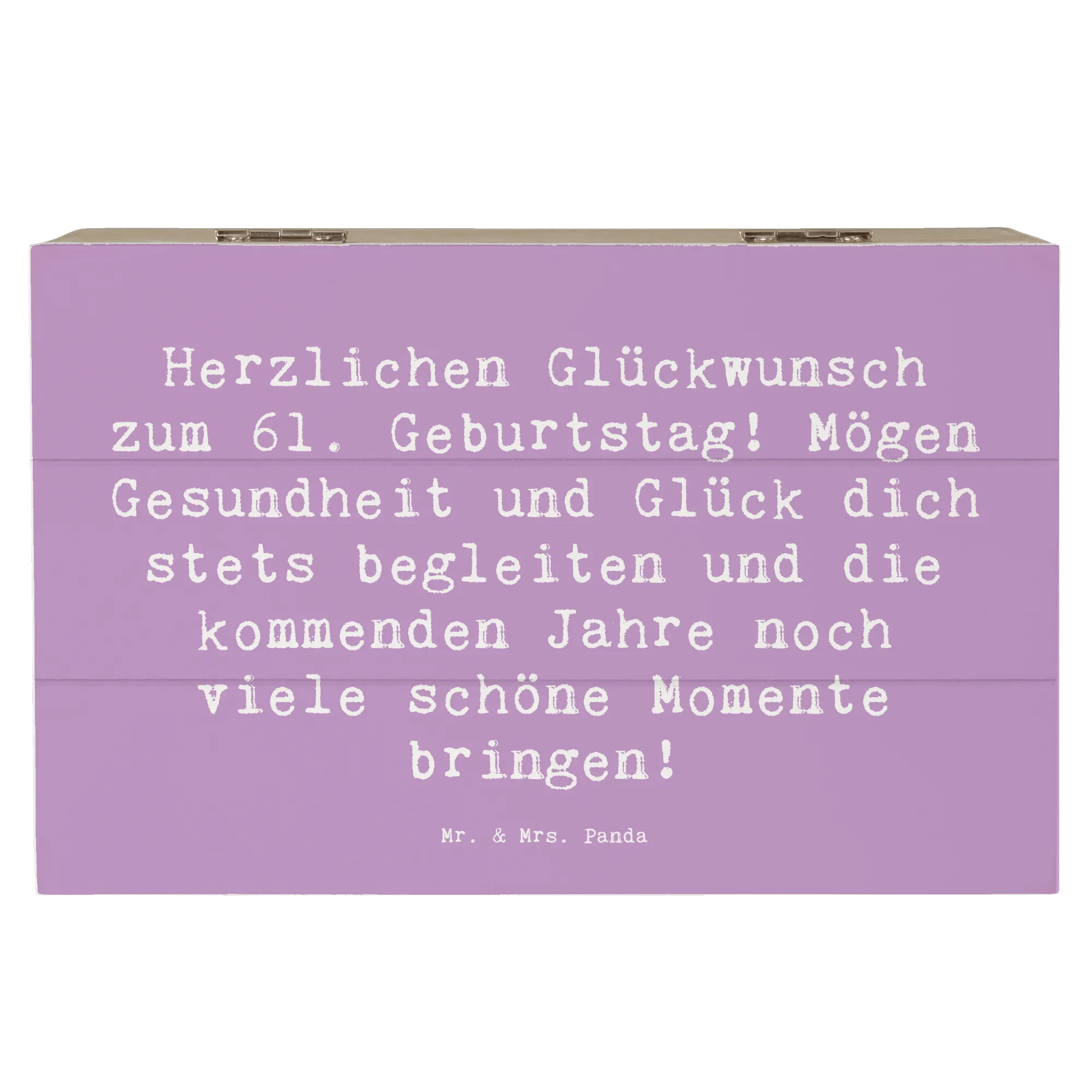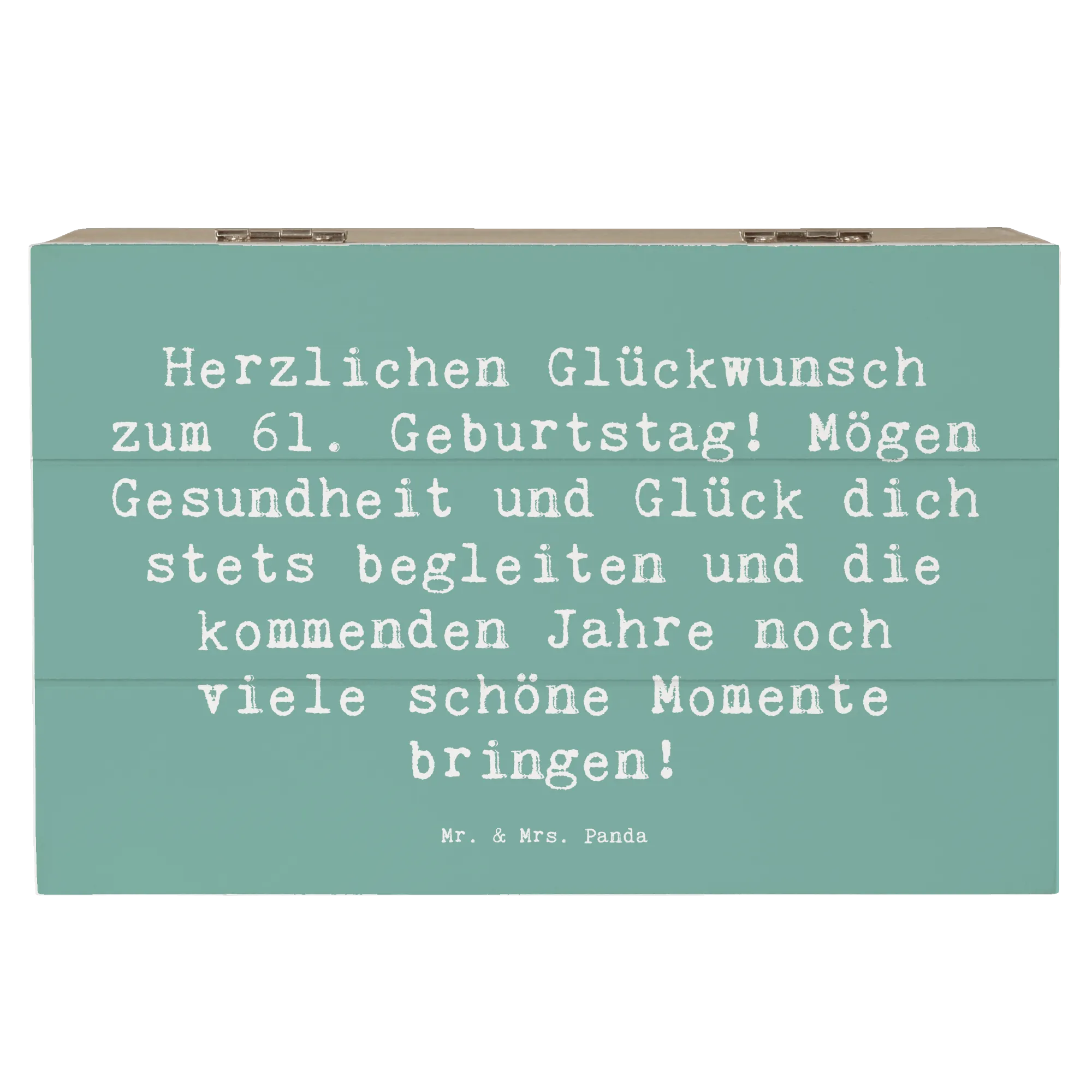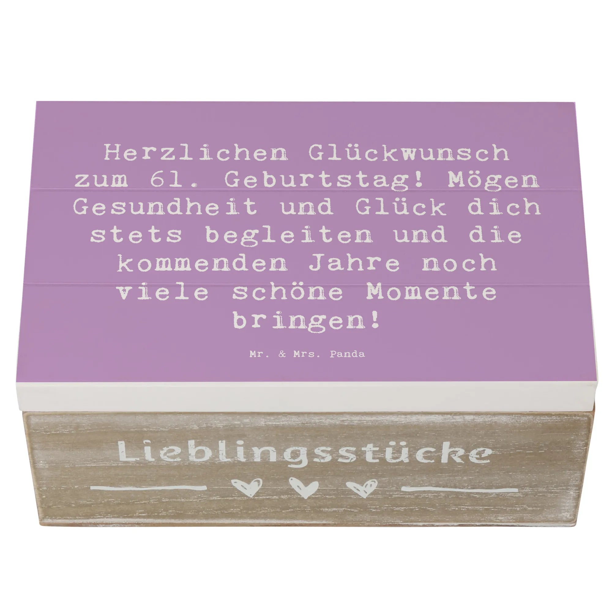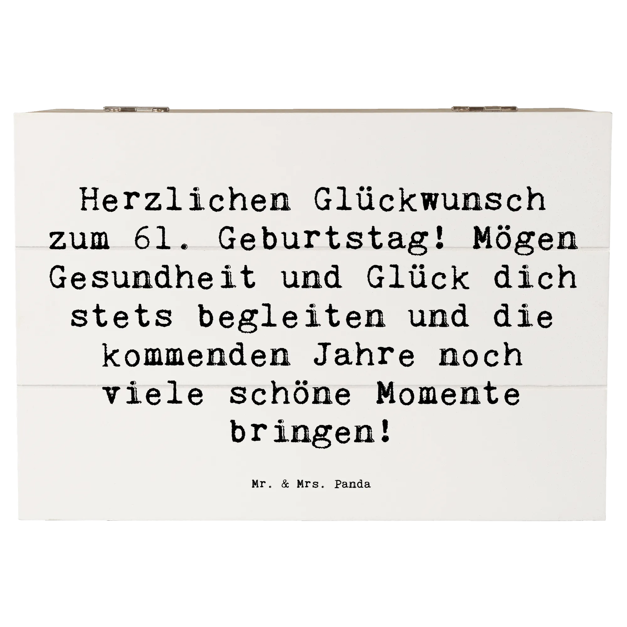 Die wunderschöne Holzkiste von Mr. & Mrs. Panda ist das ideale Geschenk zum 61. Geburtstag! Mit dem liebevollen Motiv und dem inspirierenden Spruch "Herzlichen Glückwunsch zum 61. Geburtstag! Mögen Gesundheit und Glück dich stets begleiten und die kommenden Jahre noch viele schöne Momente bringen!" ist diese Erinnerungskiste perfekt, um besondere Schätze und Erinnerungen aufzubewahren.