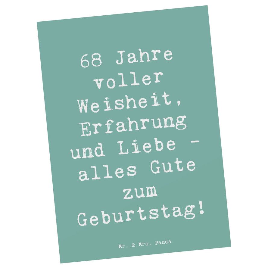 Kennst du jemanden, der demnächst seinen 68. Geburtstag feiert? Dann haben wir hier das perfekte Geschenk für dich: die bezaubernde Postkarte von Mr. & Mrs. Panda mit dem Motto "68 Jahre voller Weisheit, Erfahrung und Liebe - alles Gute zum Geburtstag!". Diese einzigartige Karte aus der speziellen Kollektion "Geburtstag Alter" ist mehr als nur eine simple Grußkarte. Sie ist ein liebevolles Zeichen der Wertschätzung und bringt garantiert ein Lächeln auf das Gesicht des Geburtstagskindes!