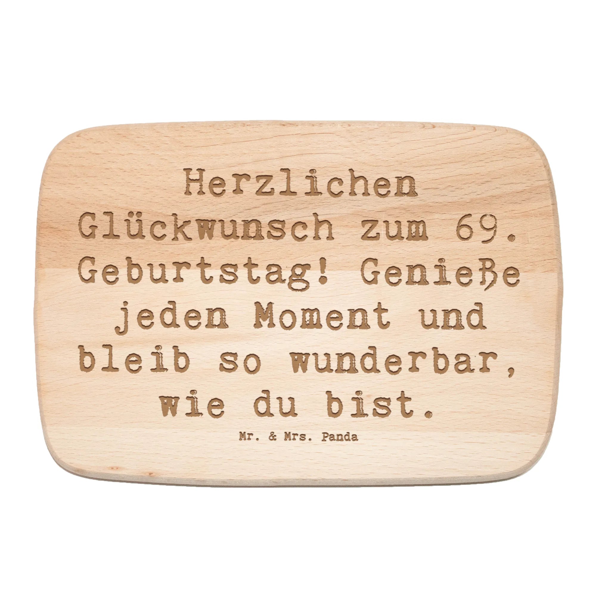 Das Frühstücksbrett von Mr. & Mrs. Panda mit dem liebevollen Motiv "Herzlichen Glückwunsch zum 69. Geburtstag! Genieße jeden Moment und bleib so wunderbar, wie du bist." ist das perfekte Geschenk für alle, die ihren 69. Geburtstag richtig feiern möchten. Ob für die eigene Küche oder als ganz besonderes Geburtstagsgeschenk für einen lieben Menschen, dieses edle Frühstücksbrett aus robustem Birkenholz macht jeden Start in den Tag etwas ganz Besonderes.