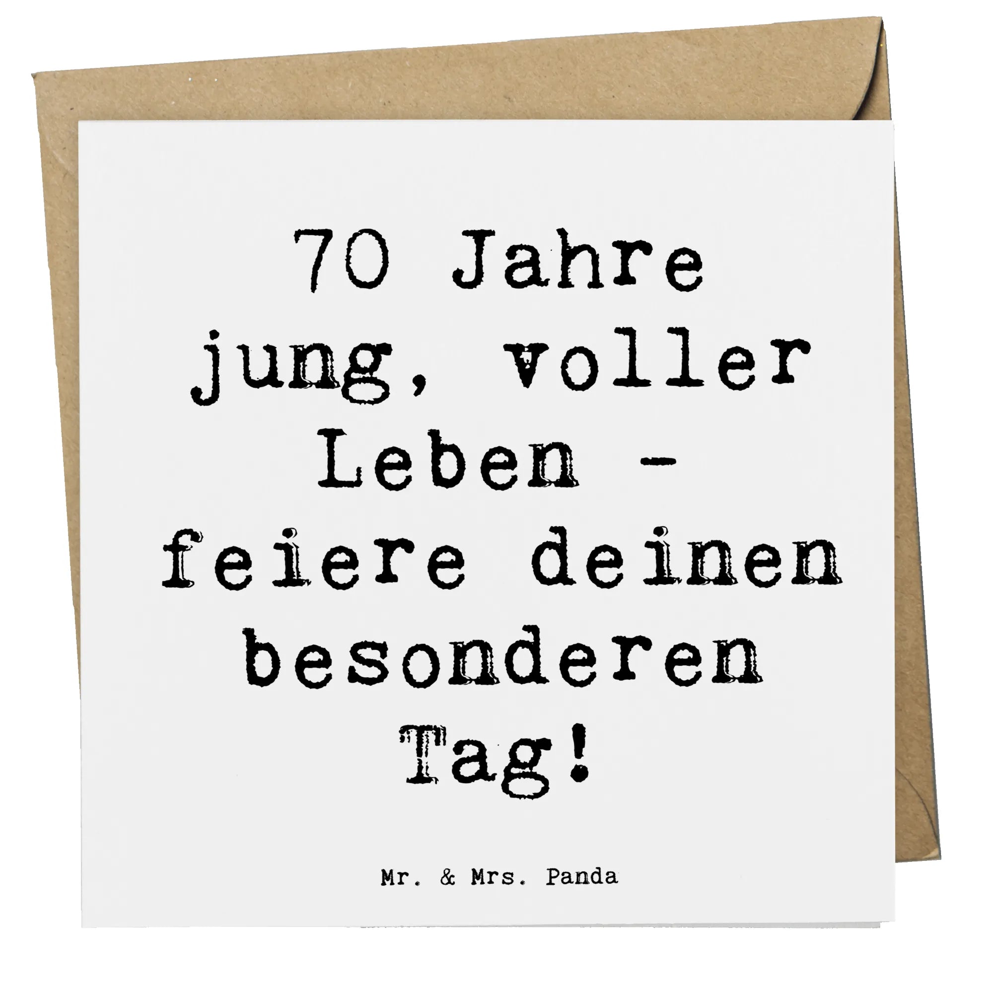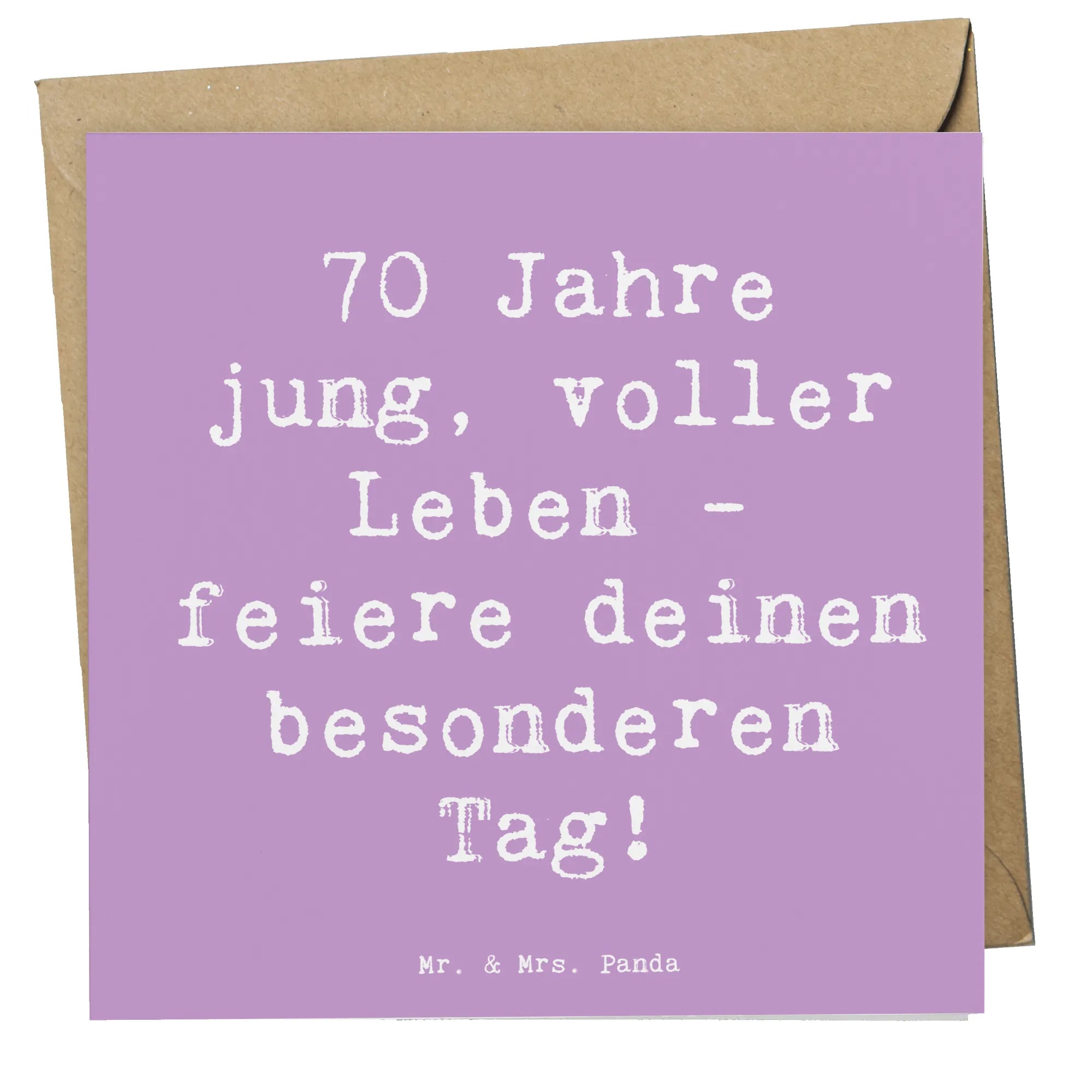 Die Deluxe Karte zum 70. Geburtstag von Mr. & Mrs. Panda ist das perfekte Geschenk für all jene, die diesen besonderen Tag gebührend feiern möchten. Mit einem liebevoll gestalteten Motiv, das mit dem Spruch "70 Jahre jung, voller Leben - feiere deinen besonderen Tag!" versehen ist, wird diese Karte zu mehr als nur einem Gruß. Sie wird zu einem kleinen Kunstwerk, das den Empfänger mit Freude und Herzlichkeit erfüllt.