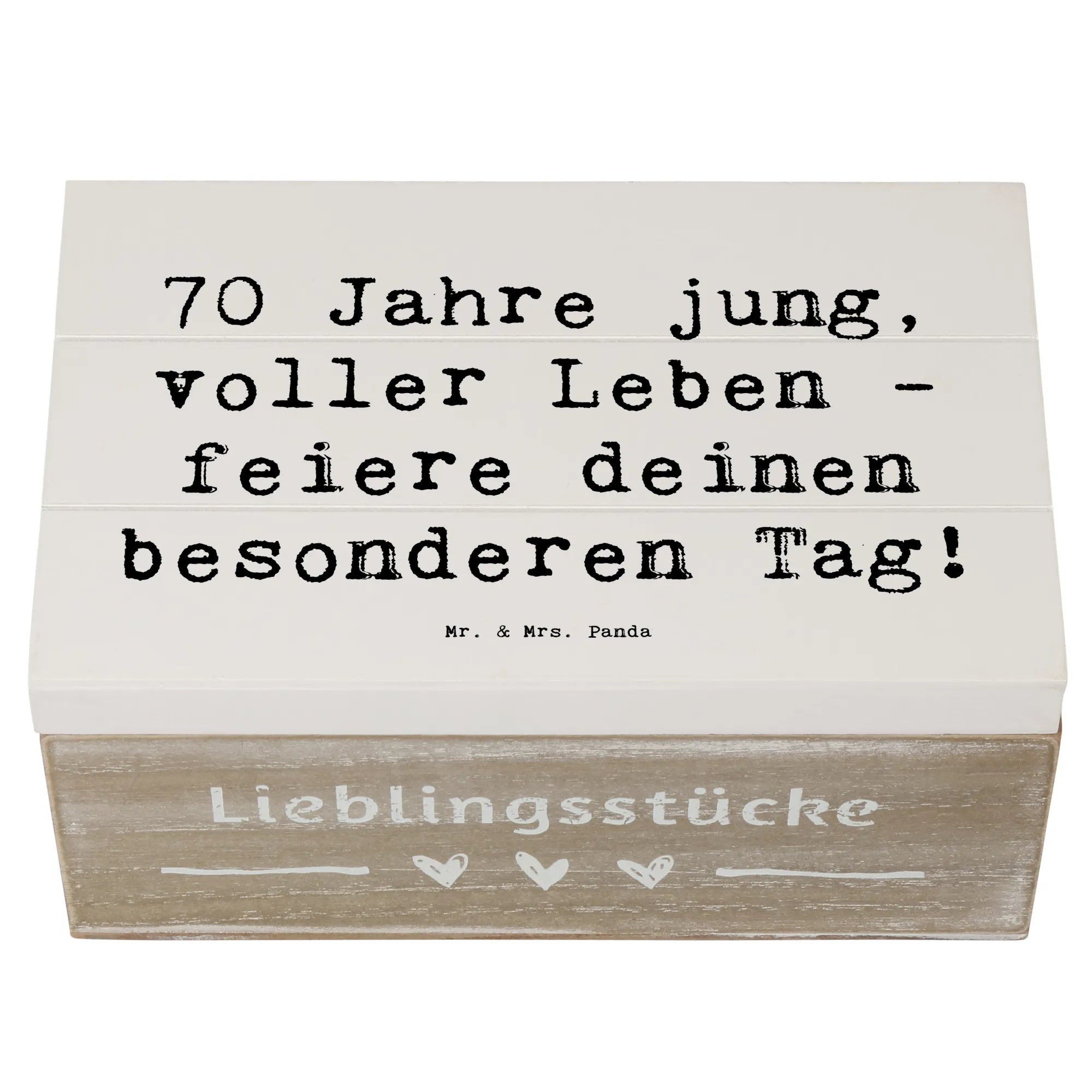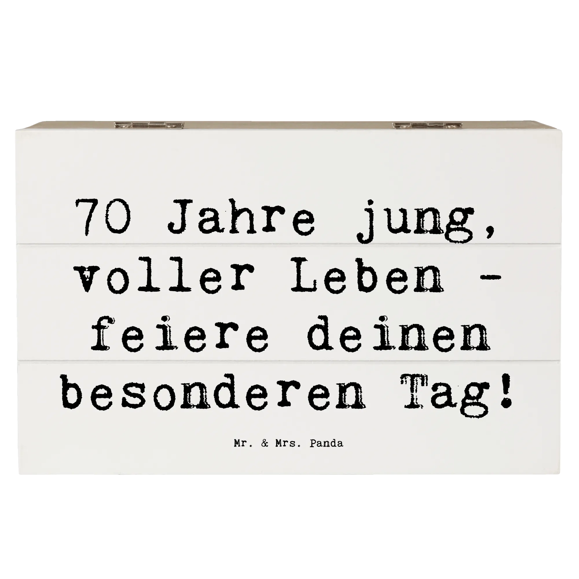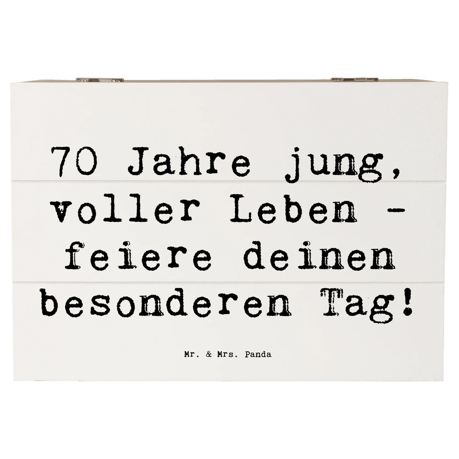 Du suchst das perfekte Geschenk für einen ganz besonderen Menschen, der seinen 70. Geburtstag feiert? Unsere wunderschöne Holzkiste von Mr. & Mrs. Panda ist genau das richtige für diesen Anlass! Mit einem liebevollen Spruch "70 Jahre jung, voller Leben - feiere deinen besonderen Tag!" geziert, ist diese Kiste nicht nur ein toller Blickfang, sondern auch eine wunderbare Erinnerung.