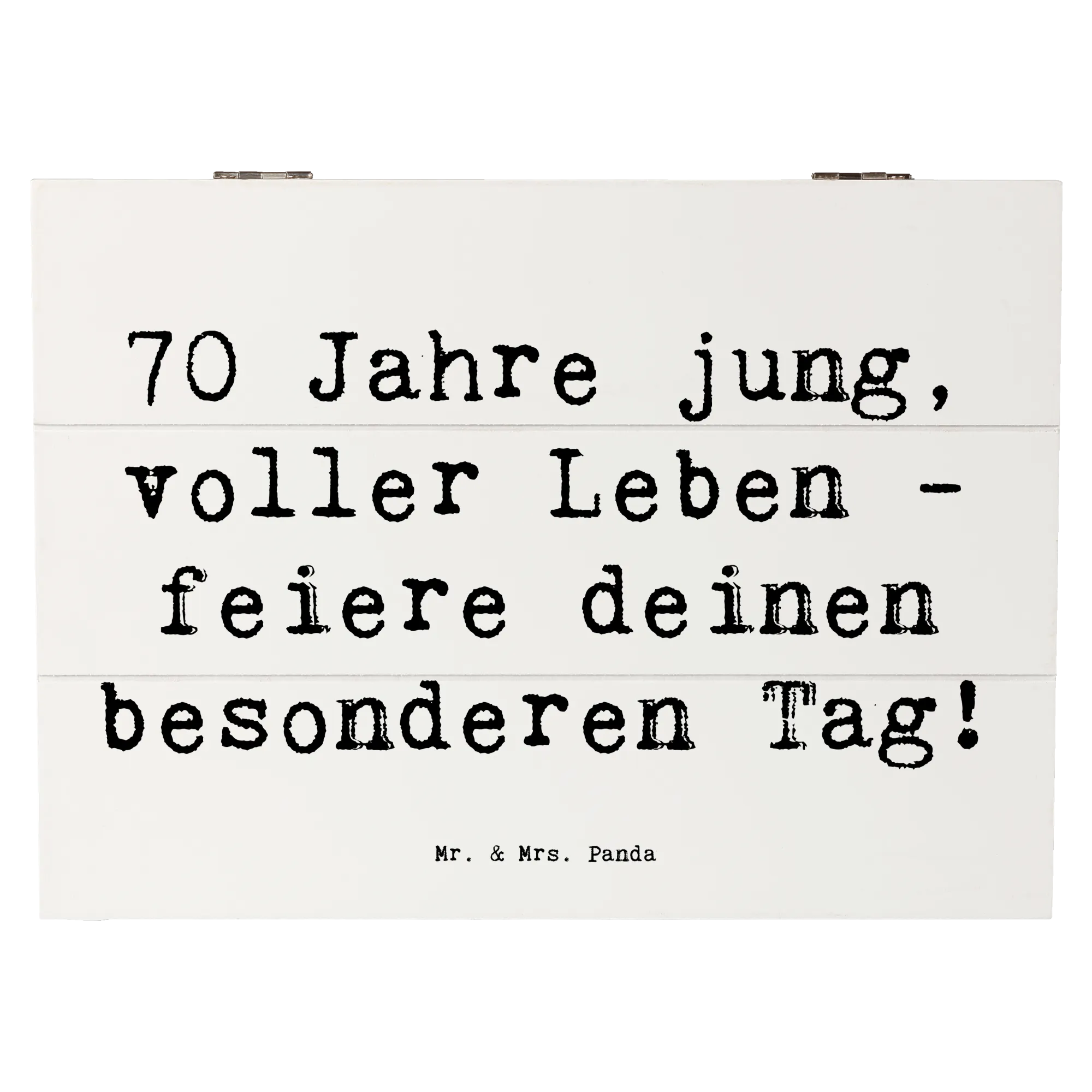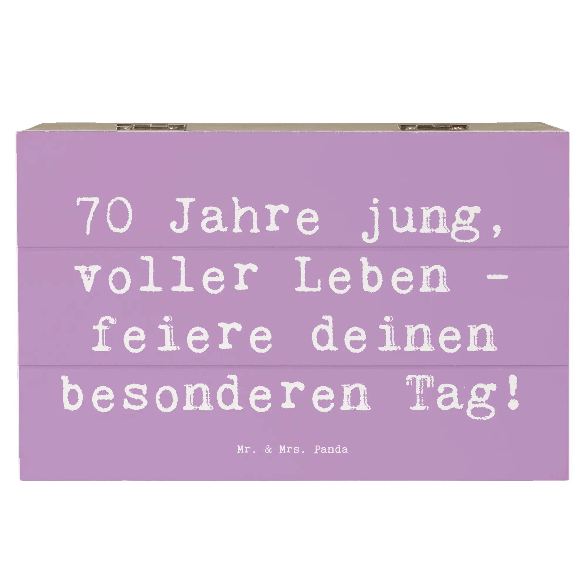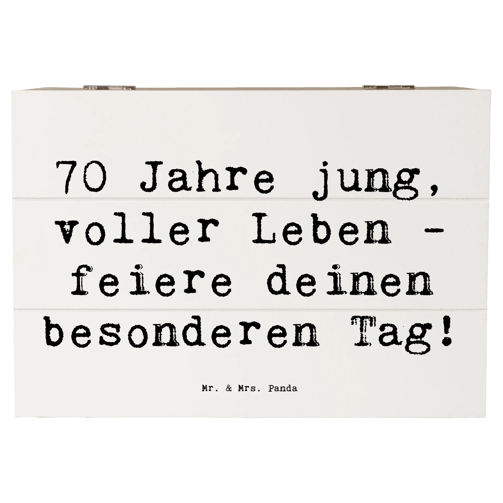 Du suchst das perfekte Geschenk für einen ganz besonderen Menschen, der seinen 70. Geburtstag feiert? Unsere wunderschöne Holzkiste von Mr. & Mrs. Panda ist genau das richtige für diesen Anlass! Mit einem liebevollen Spruch "70 Jahre jung, voller Leben - feiere deinen besonderen Tag!" geziert, ist diese Kiste nicht nur ein toller Blickfang, sondern auch eine wunderbare Erinnerung.