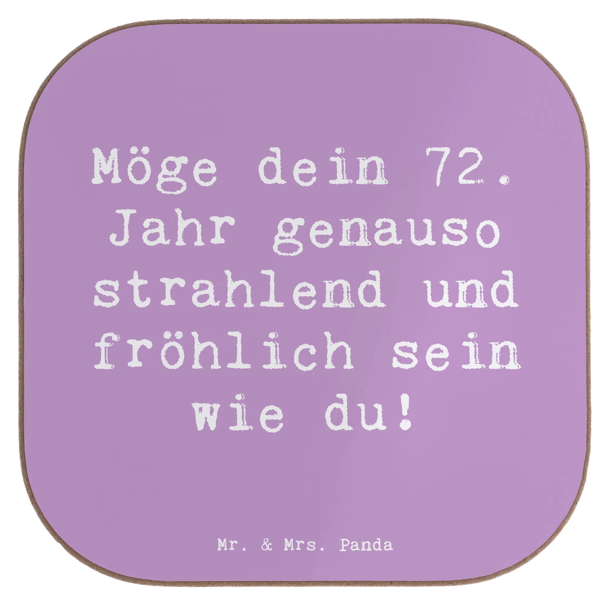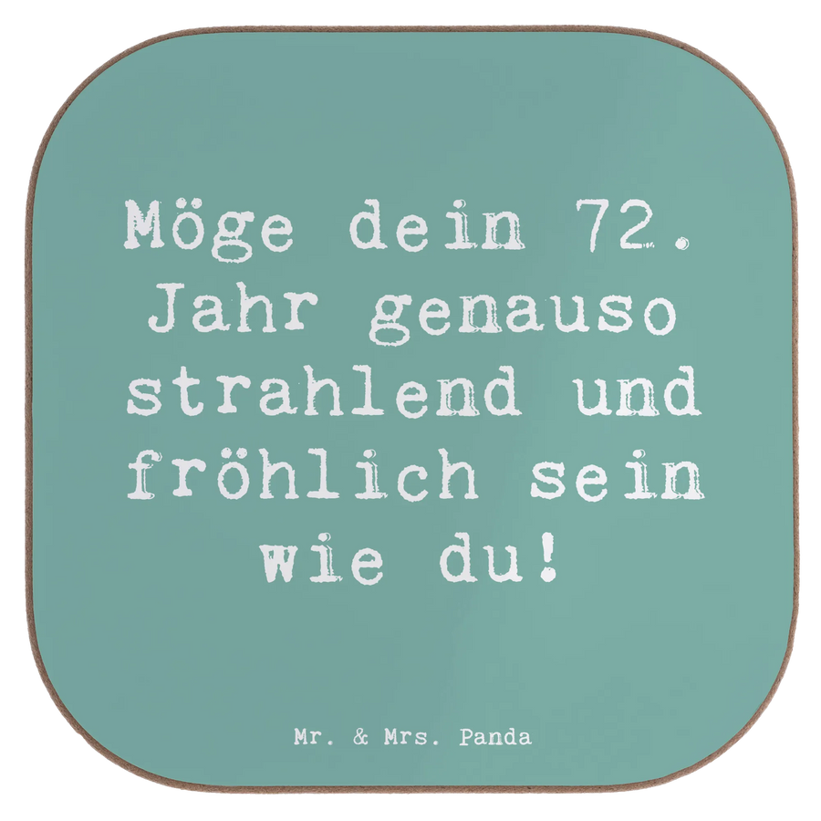 Feier den 72. Geburtstag auf ganz besondere Art mit unserem liebevollen Untersetzer von Mr. & Mrs. Panda! Dieser quadratische Untersetzer ist nicht nur ein praktisches Accessoire für deinen Tisch, sondern auch ein wunderschönes Geschenk, das Freude und gute Laune verbreitet. Bedruckt mit dem wundervollen Spruch: "Möge dein 72. Jahr genauso strahlend und fröhlich sein wie du!", ist er der perfekte Begleiter für jeden Geburtstag oder für eine fröhliche Feier der besonderen Art.