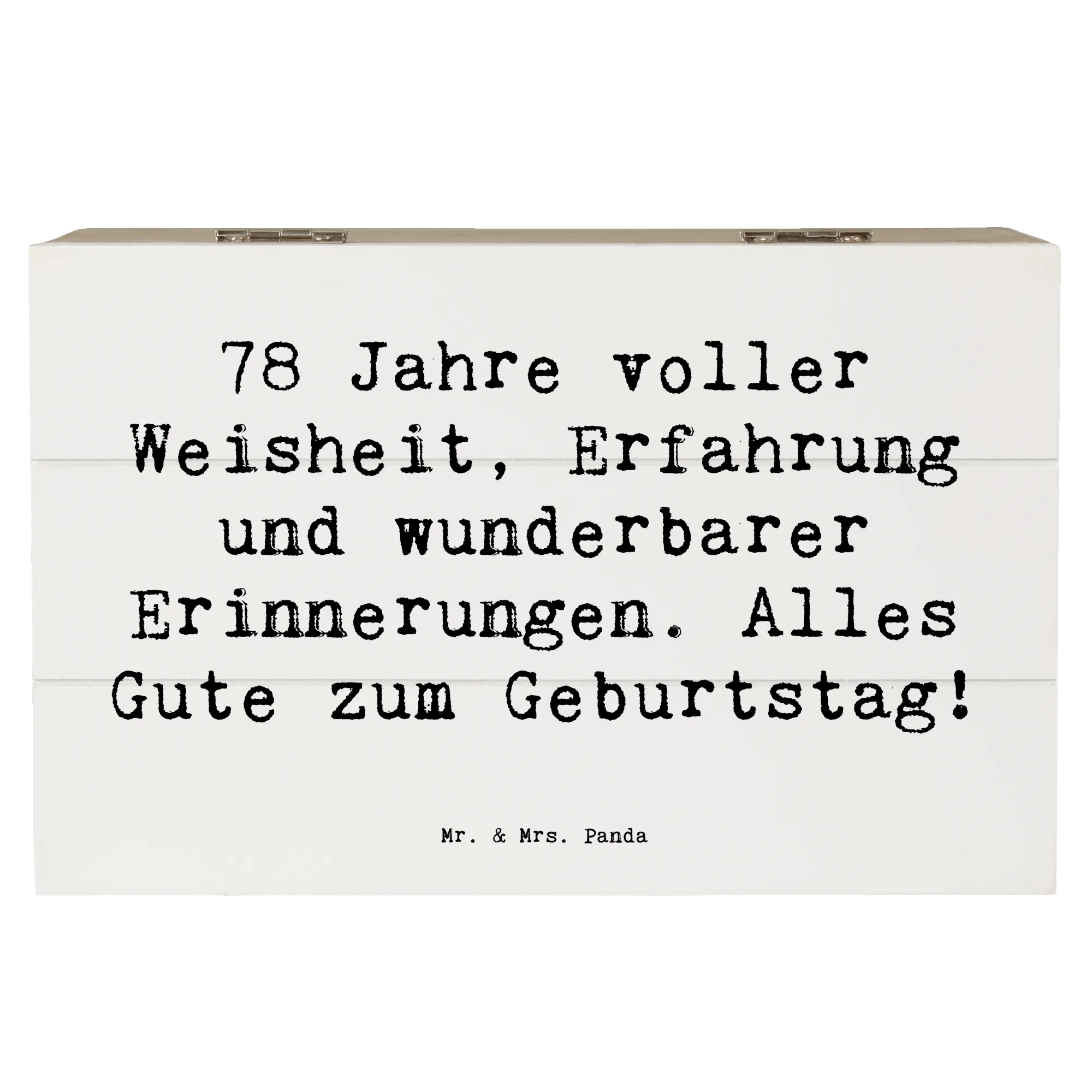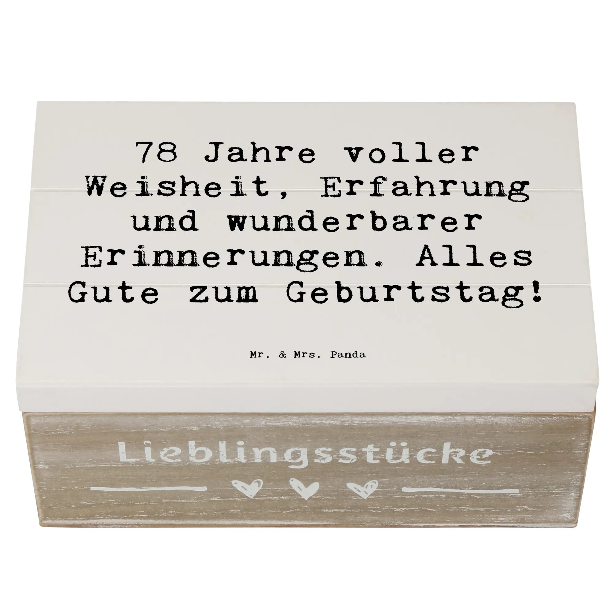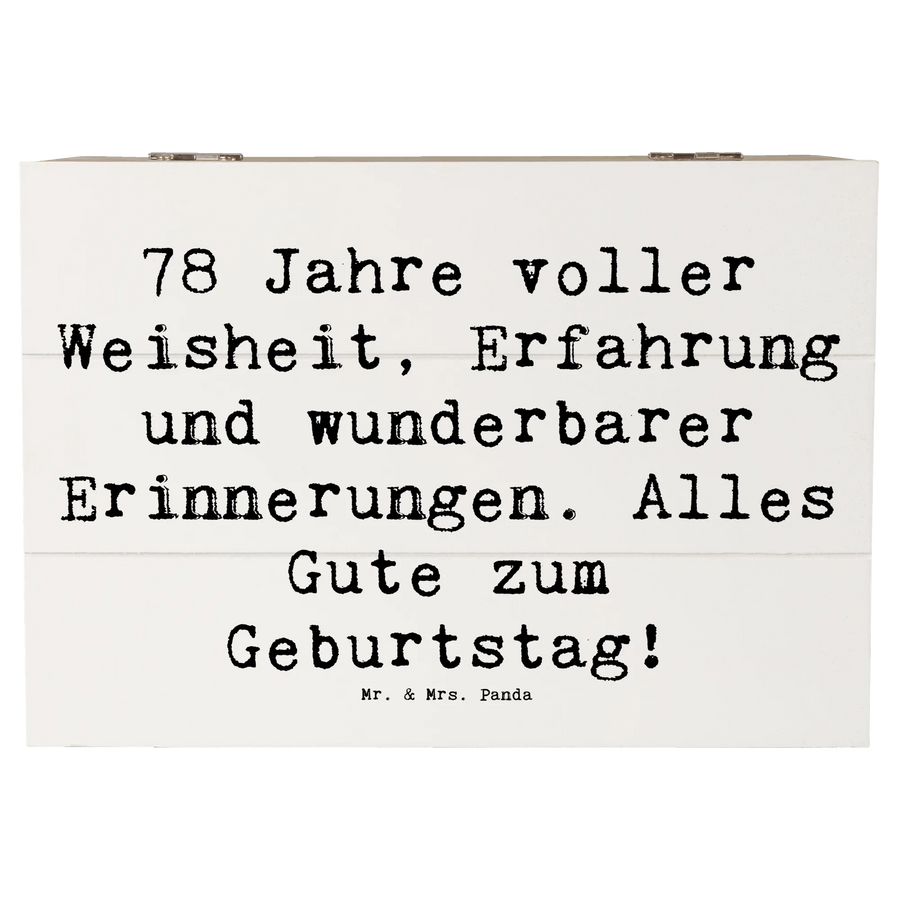 Die wunderschöne Holzkiste von Mr. & Mrs. Panda ist das perfekte Geschenk zum 78. Geburtstag! Sie trägt den liebevollen Spruch "78 Jahre voller Weisheit, Erfahrung und wunderbarer Erinnerungen. Alles Gute zum Geburtstag!" und bietet Platz für all die wertvollen Erinnerungen, die ein Leben lang begleiten.