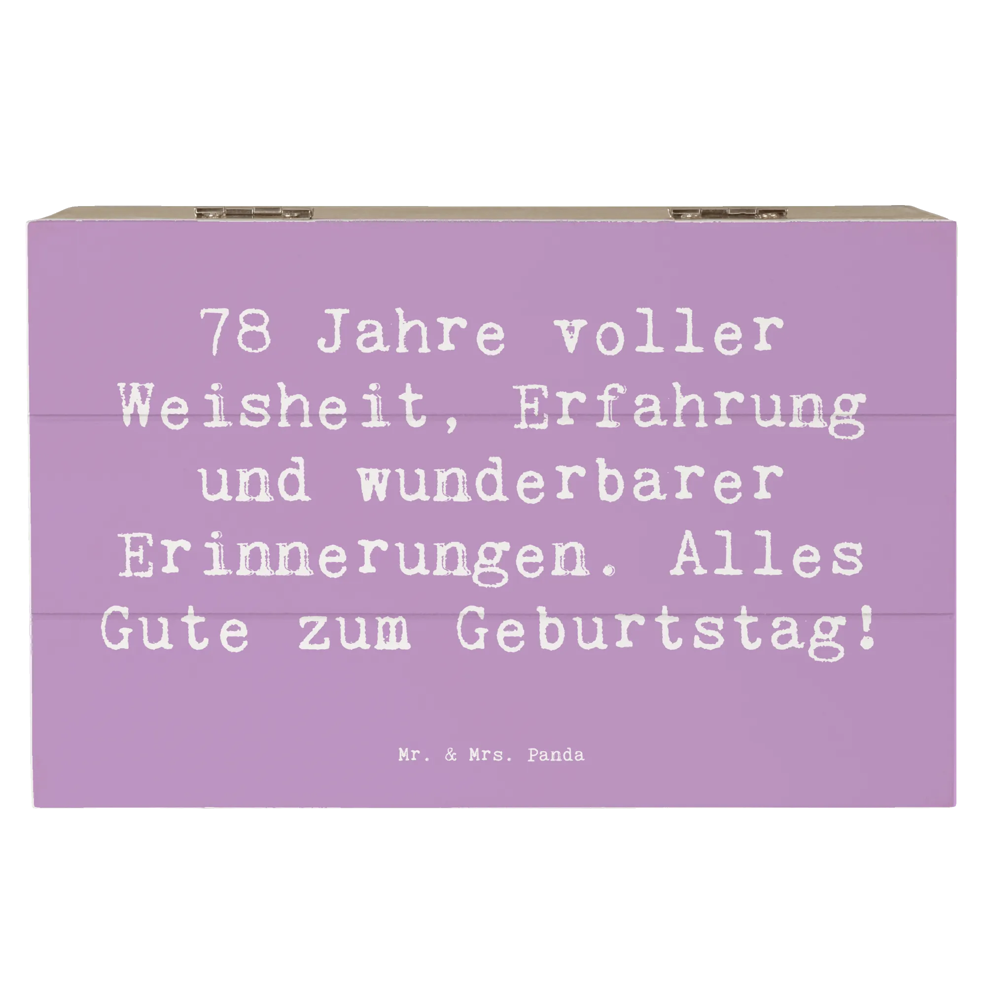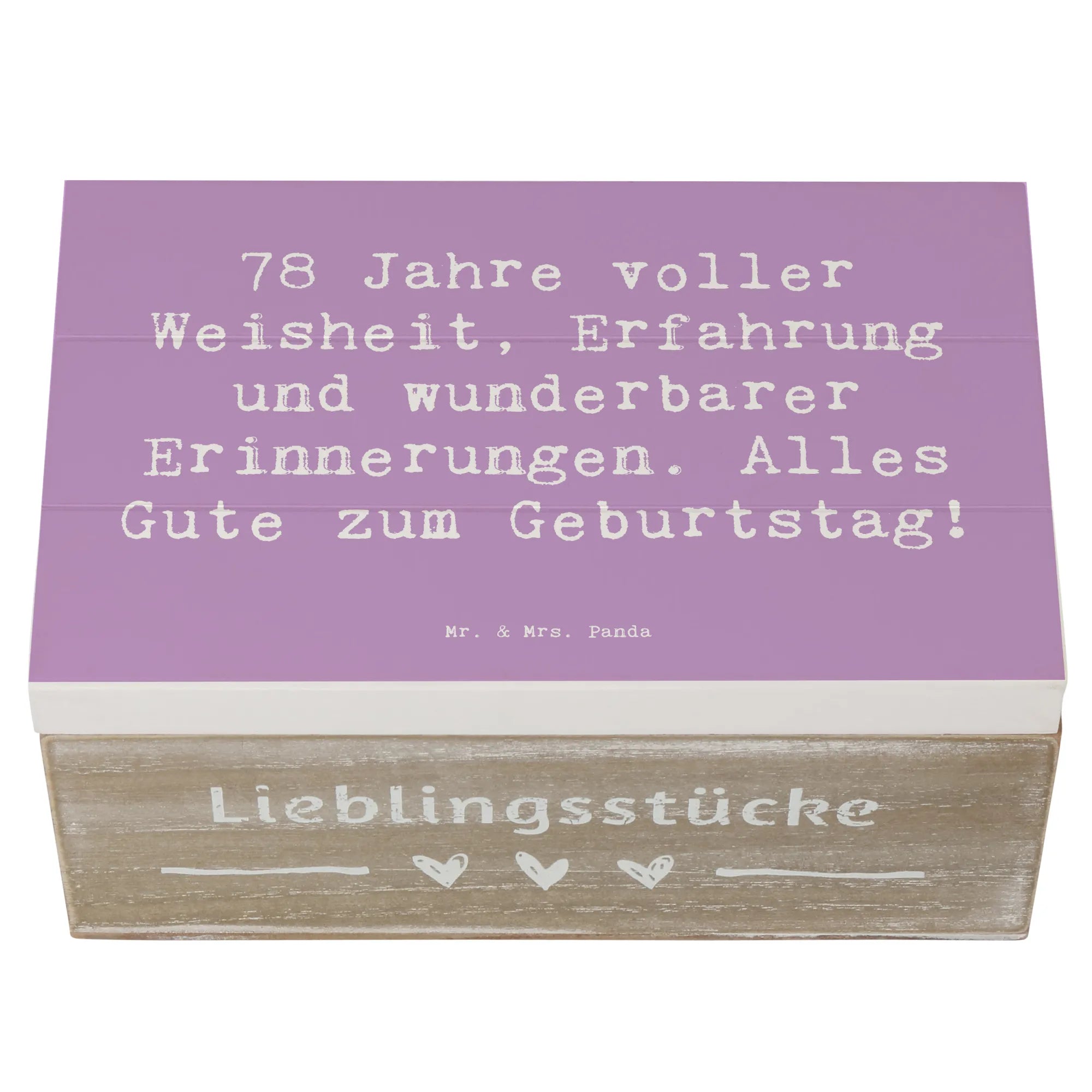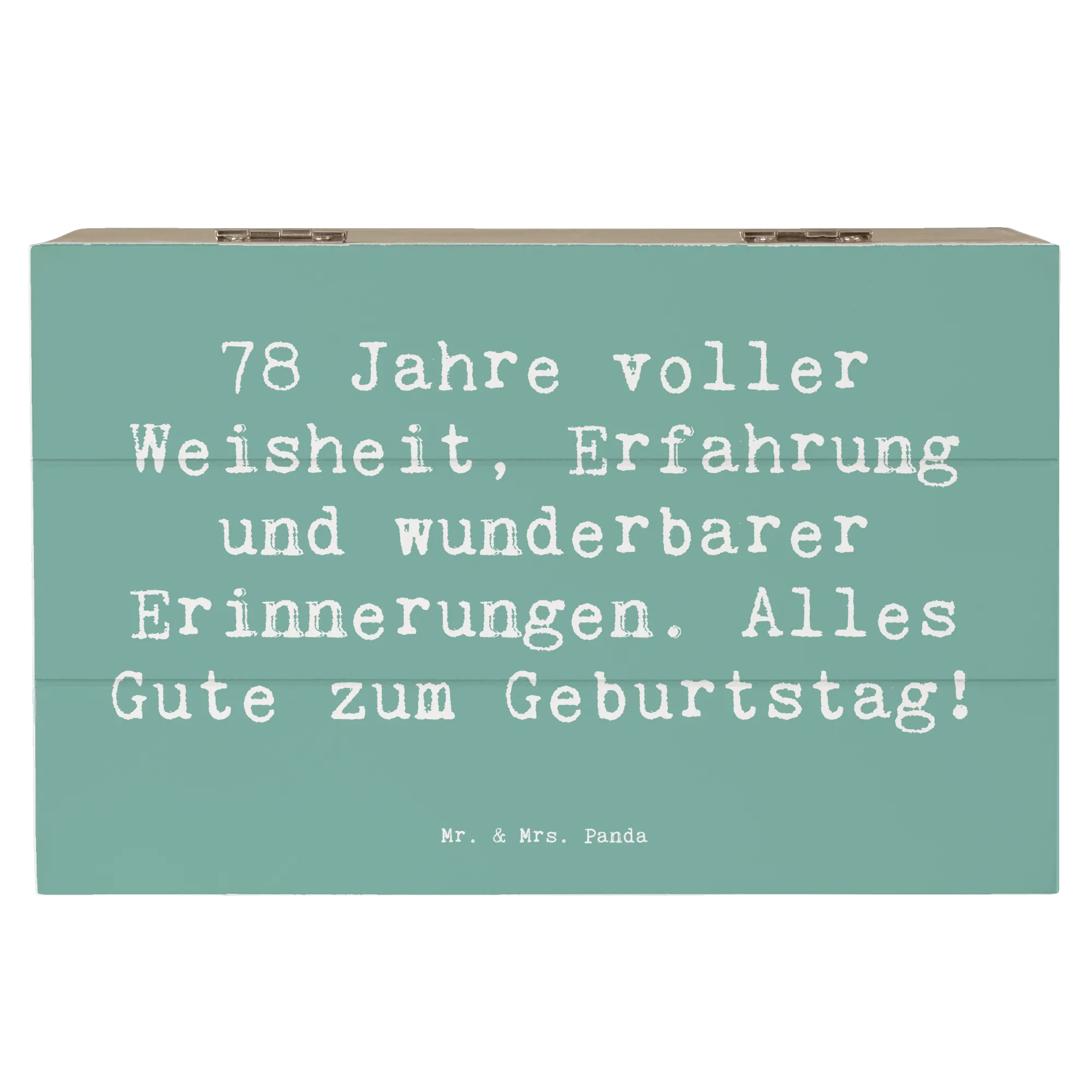 Die wunderschöne Holzkiste von Mr. & Mrs. Panda ist das perfekte Geschenk zum 78. Geburtstag! Sie trägt den liebevollen Spruch "78 Jahre voller Weisheit, Erfahrung und wunderbarer Erinnerungen. Alles Gute zum Geburtstag!" und bietet Platz für all die wertvollen Erinnerungen, die ein Leben lang begleiten.