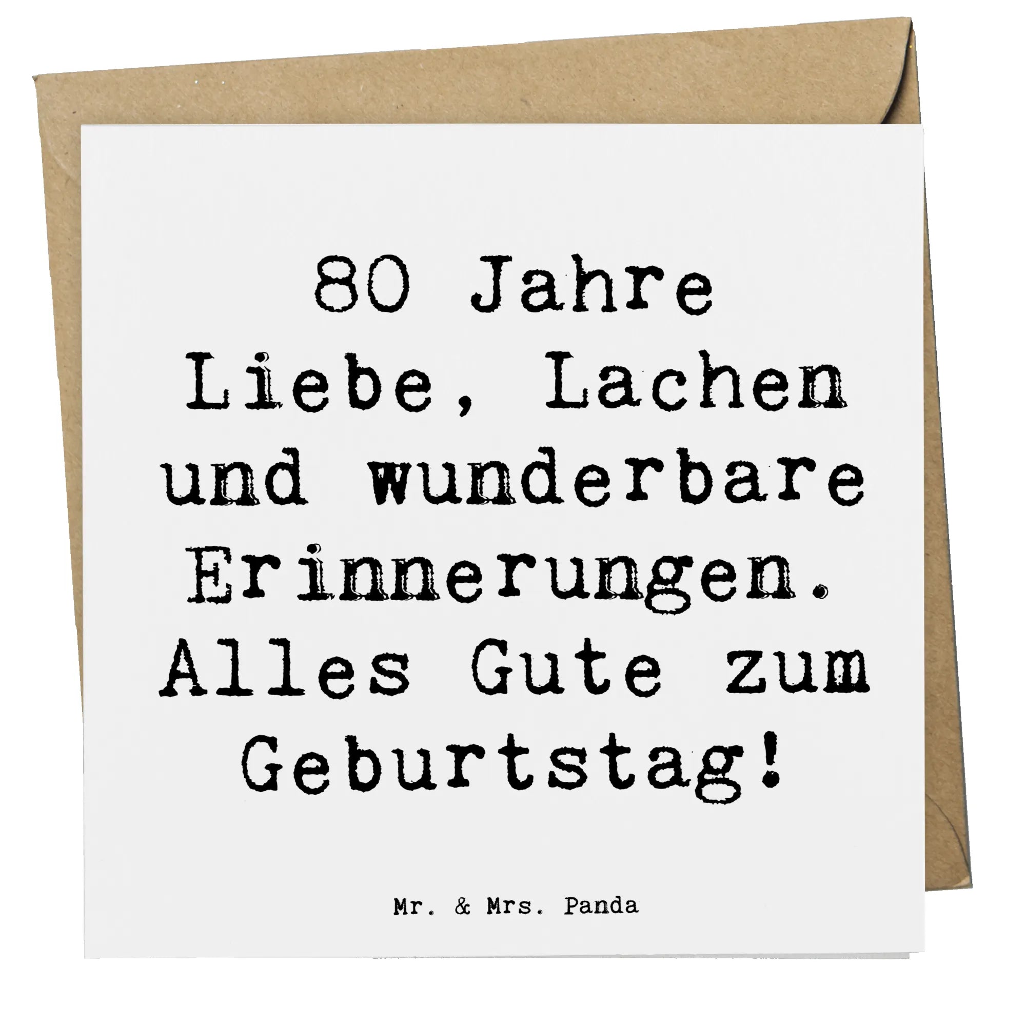 Die Karte besticht durch ein liebevolles Design und den herzlichen Spruch: "80 Jahre Liebe, Lachen und wunderbare Erinnerungen. Alles Gute zum Geburtstag!". Sie ist aus hochwertigem 300 Gramm Karton gefertigt und überzeugt durch ihre hochwertige Optik. Mit der Größe von 140 mm x 140 mm passt sie perfekt in jeden Umschlag und ist ein wundervolles Highlight auf jeder Geburtstagsfeier.
