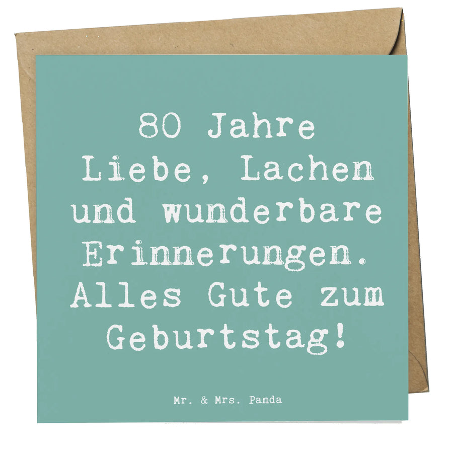 Egal, ob du sie selbst nutzt oder sie einem Freund oder Verwandten schenkst, diese Karte wird sicher in Erinnerung bleiben. Setze ein Zeichen der Wertschätzung und Liebe mit dieser Deluxe Karte zum 80. Geburtstag aus der bunten Geburtstagsskollektion von Mr. & Mrs. Panda. Sie ist der perfekte Weg, um deine herzlichen Glückwünsche auszudrücken und die besonderen Momente im Leben zu feiern. Mit liebevollen Illustrationen, einem besonders durchdachten Spruch und hochwertiger Verarbeitung ist diese Karte eine tolle Wahl für jeden, der eine ganz besondere Geburtstagskarte sucht.
